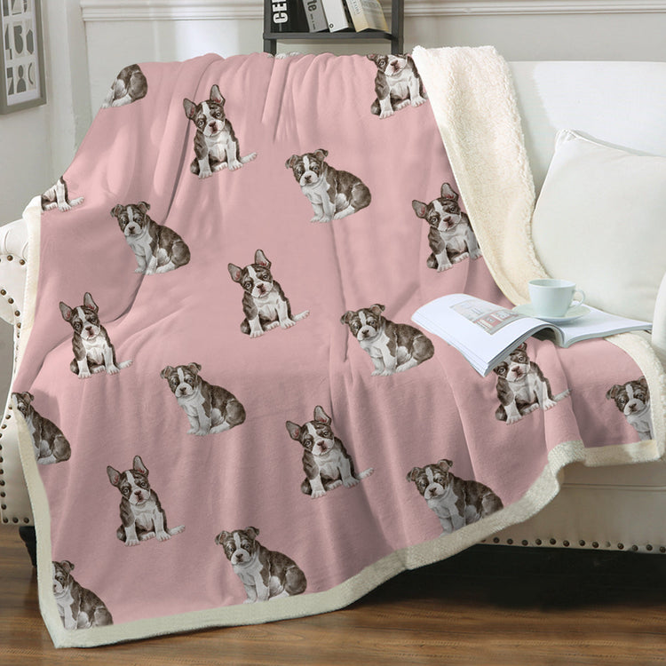 Watercolor Boston Terrier Puppies Sherpa Fleece Blanket - 8 Colors-Blanket-Bedding, Blankets, Boston Terrier, Home Decor-1