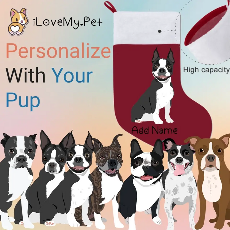 Bring holiday cheer to your home with our Personalized Boston Terrier Large Christmas Stocking.