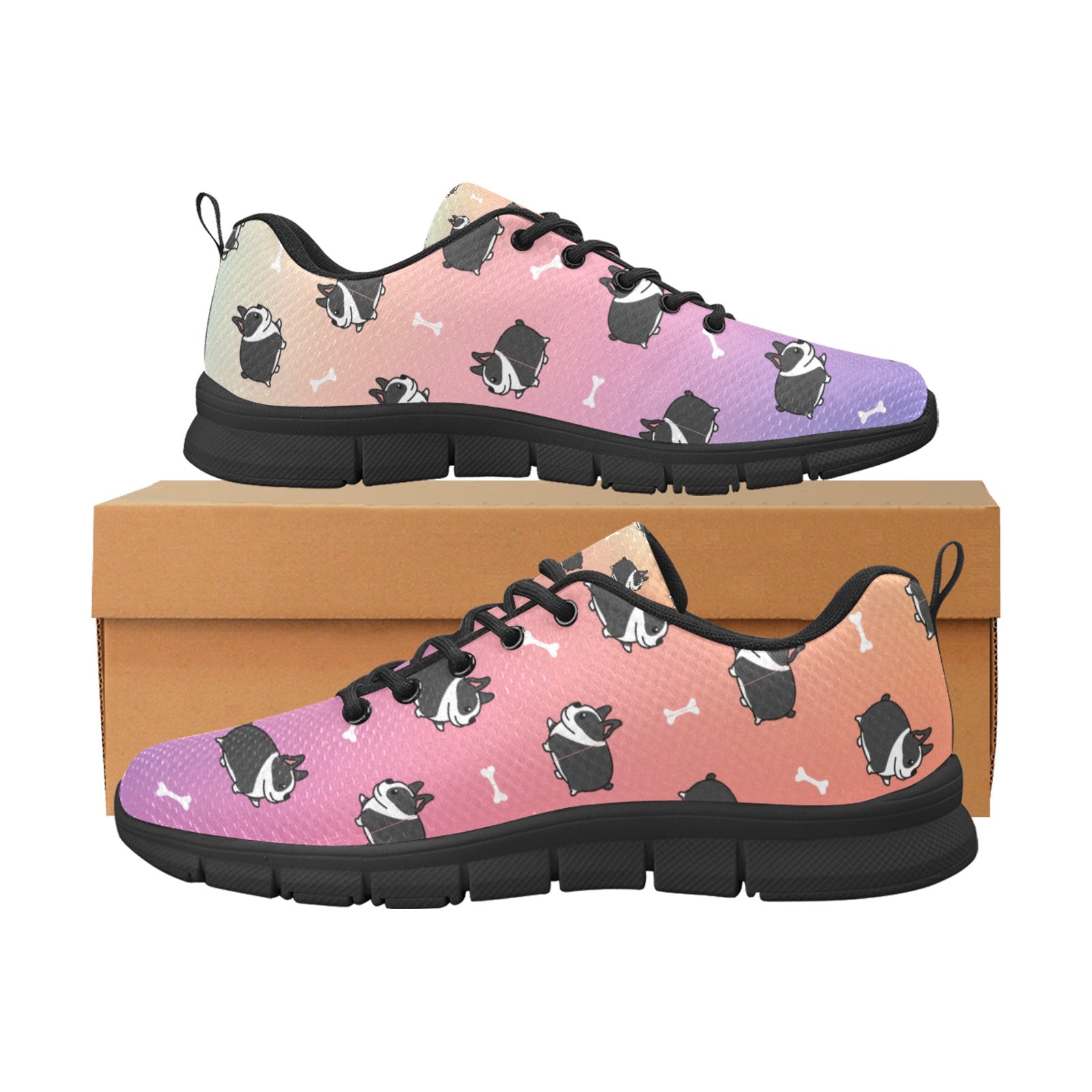 Plumpy Boston Terrier Love Women's Breathable Sneakers-Footwear-Boston Terrier,Dog Mom Gifts,Shoes-Black-US13-47