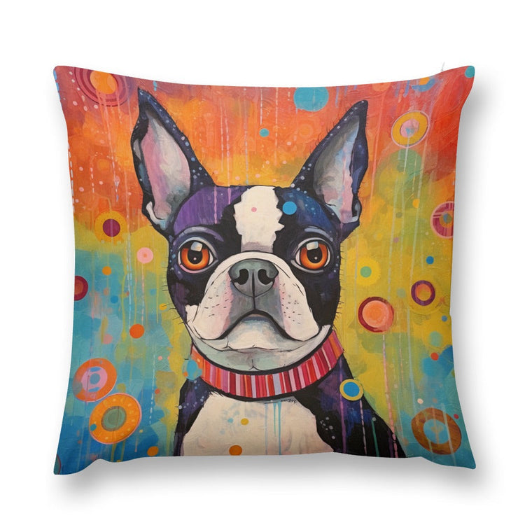 Embrace the joy and vibrant spirit of the Boston Terrier with our Colorful Dream Boston Terrier Plush Pillow Case, "Kaleidoscope Canine".