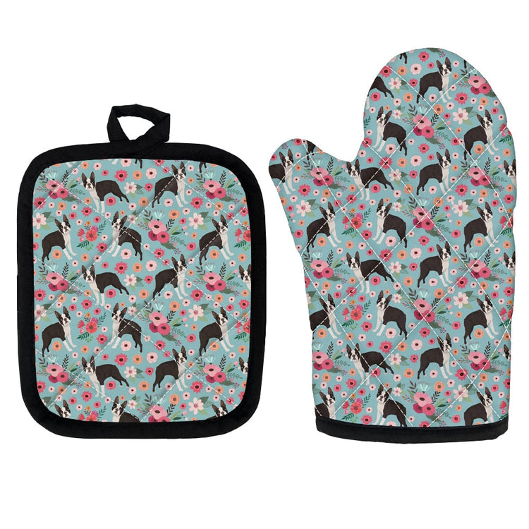 Infinite Boston Terrier Love Oven Mitten Glove and Pot Holder Set