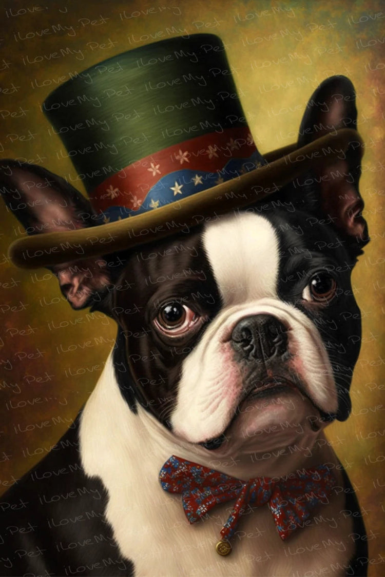 Patriotic Top Hat Boston Terrier Wall Art Poster