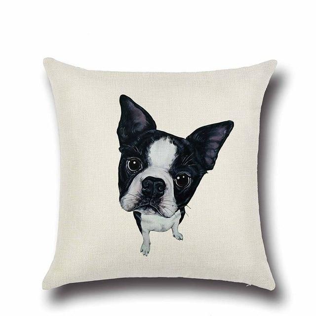 Made of cotton and linen, featuring a simple and cute Boston Terrier print.