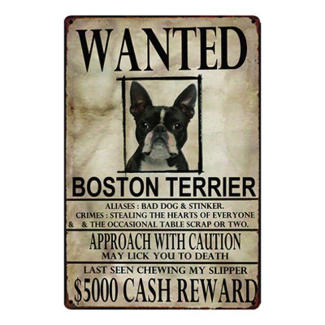 Wanted Boston Terrier Approach With Caution Tin Poster - Series 1-Sign Board-Boston Terrier, Dogs, Home Decor, Sign Board-25