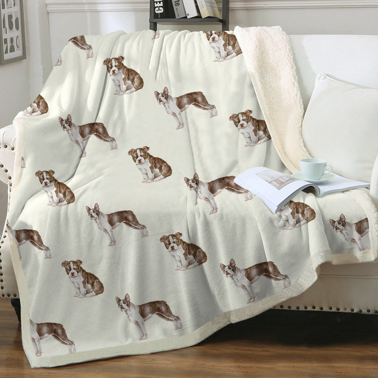 Watercolor Chocolate Red Boston Terriers Fleece Blanket - 8 Colors-Blanket-Bedding, Blankets, Boston Terrier, Home Decor-7