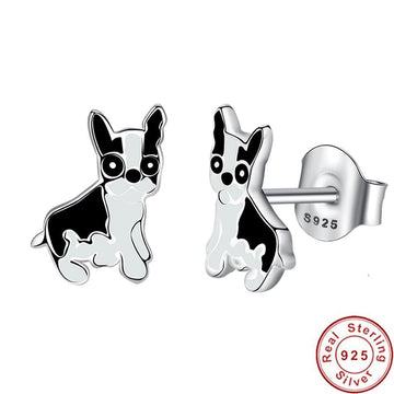 Featuring two of the most adorable Black and White Boston Terriers in enamel designs, both with a 925 Sterling Silver push-back pin.