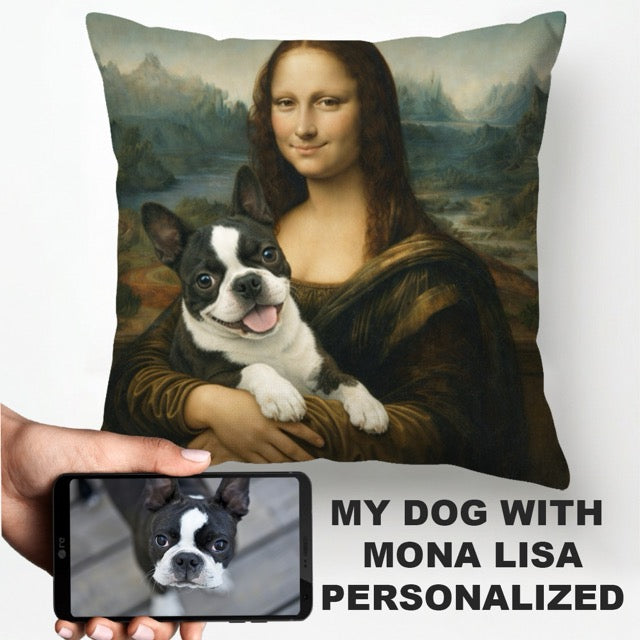 My Boston Terrier with Mona Lisa - Personalized Pillowcase