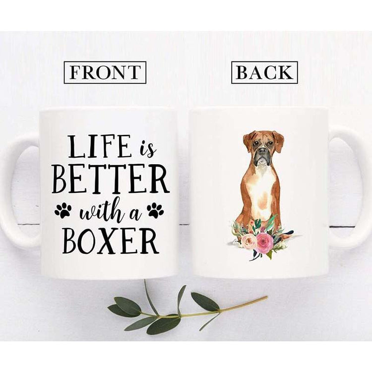 Featuring the cutest 'Life is Better with a Boxer' design. Use this cutest mug for Boxer lovers for your daily coffee, tea, milk, or anything you need!