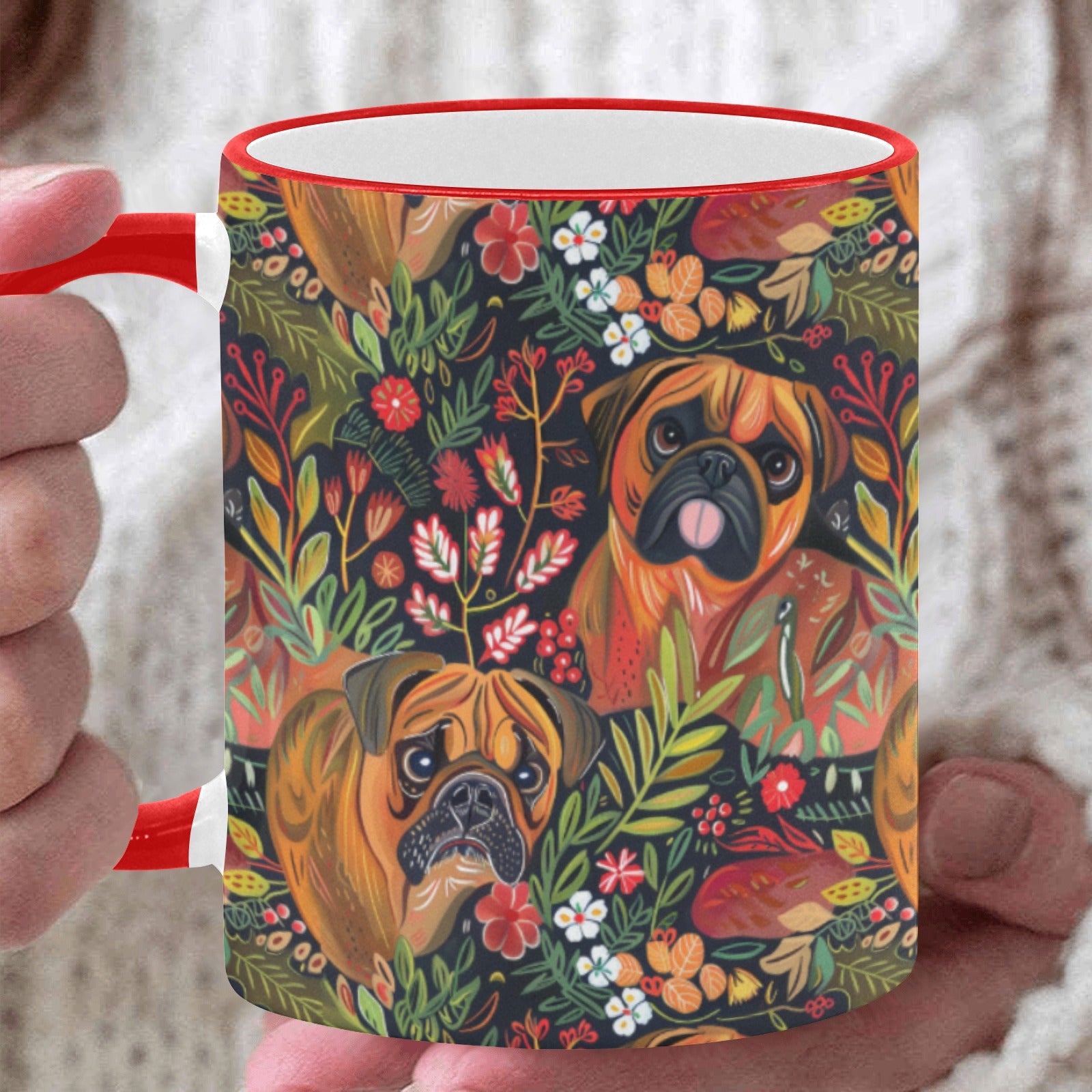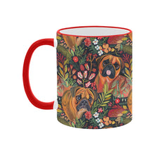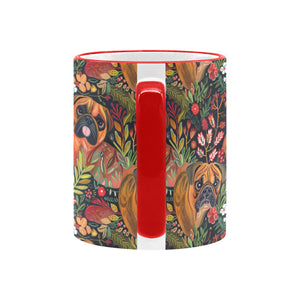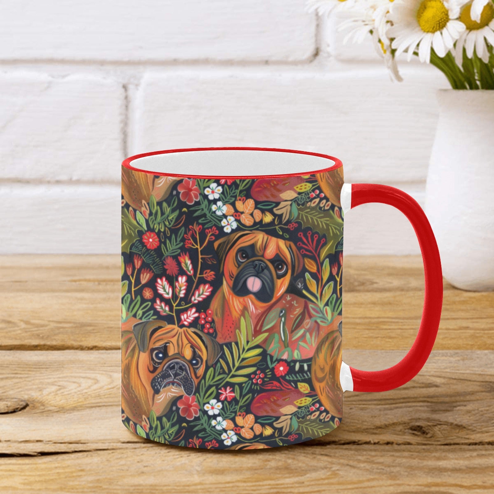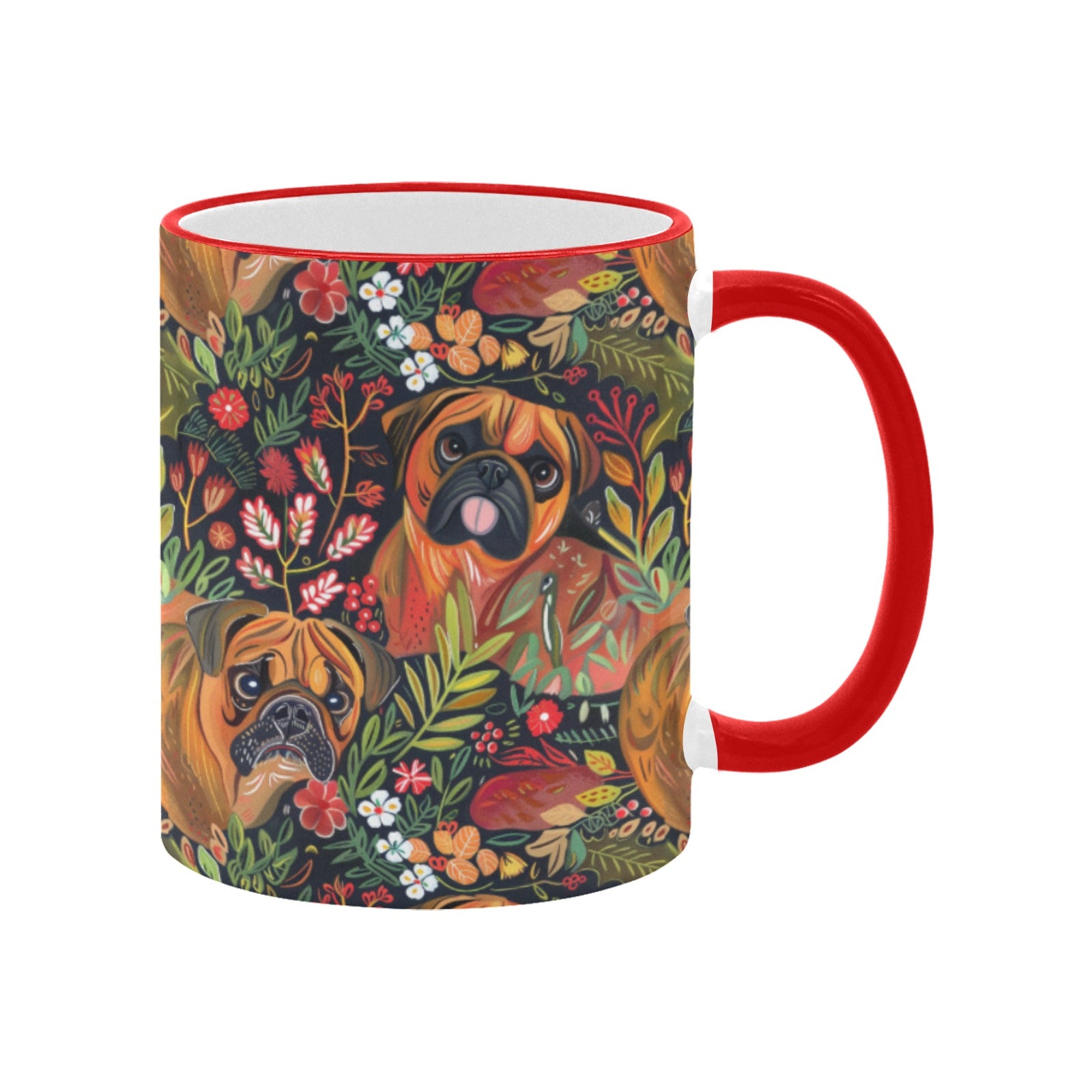 This vibrant mug captures the playful spirit of Boxers, surrounded by a lush garden of colorful flowers, making every sip a joyful experience.