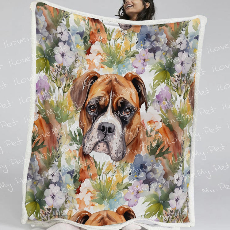 Experience the joyous synergy of nature and canine loyalty with our Watercolor Flower Garden Boxer Soft Warm Fleece Blanket.
