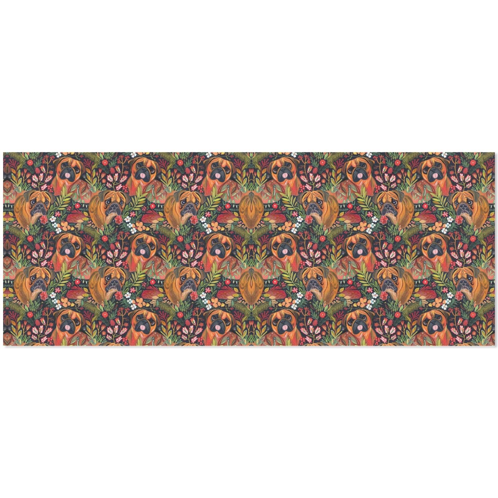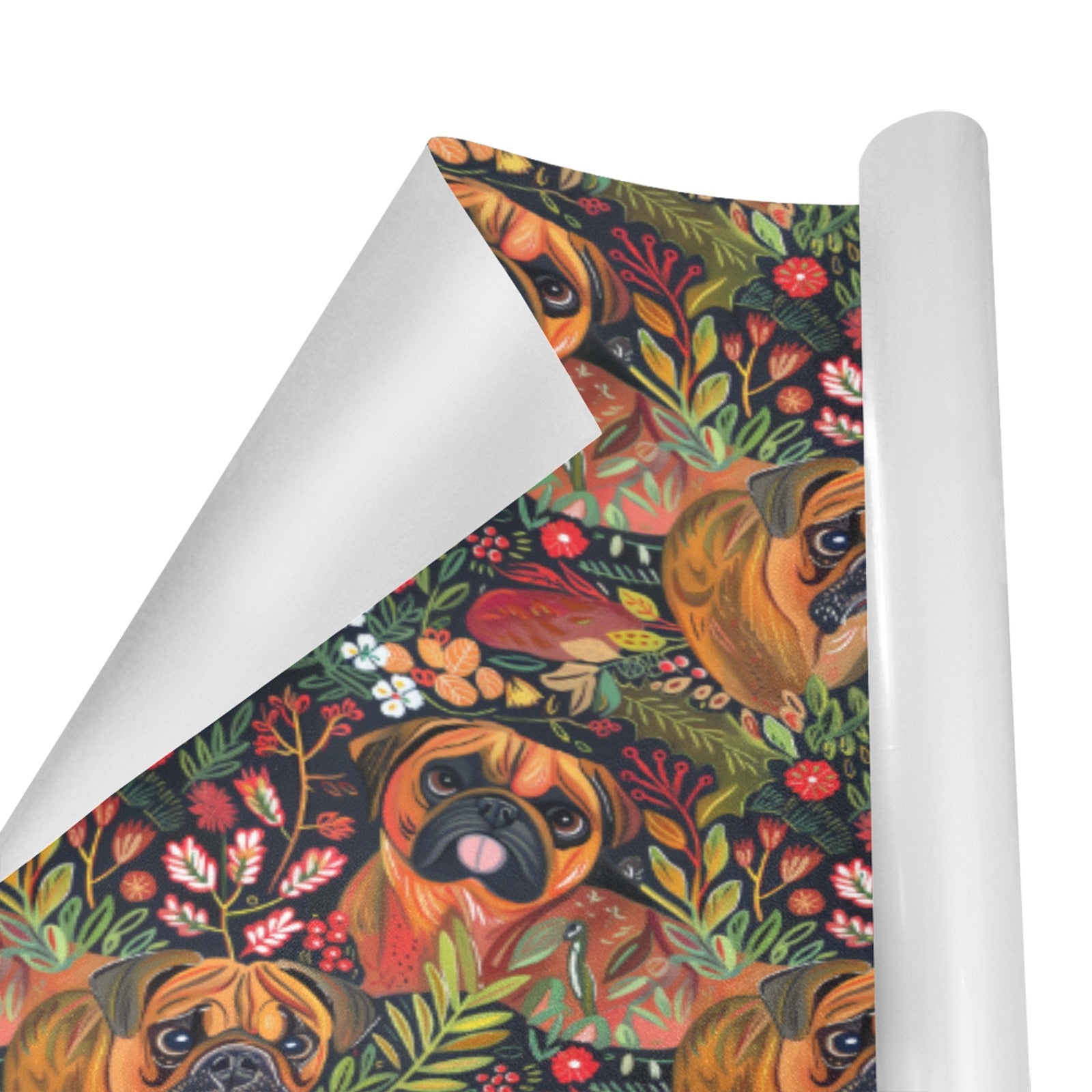 Each roll features expressive Boxers framed by intricate botanical elements, celebrating the bond between pets and their humans. The rich palette of reds, greens, and yellows radiates warmth and happiness, making every gift feel special.