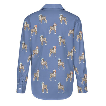 Watercolor Brindle Boxer Dogs Christmas Women's Shirt-Apparel-Apparel, Boxer, Christmas, Dog Mom Gifts, Shirt-S-CornflowerBlue-30