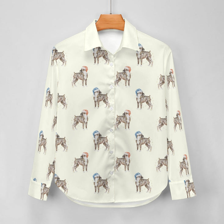 Watercolor Brindle Boxer Dogs Christmas Women's Shirt
