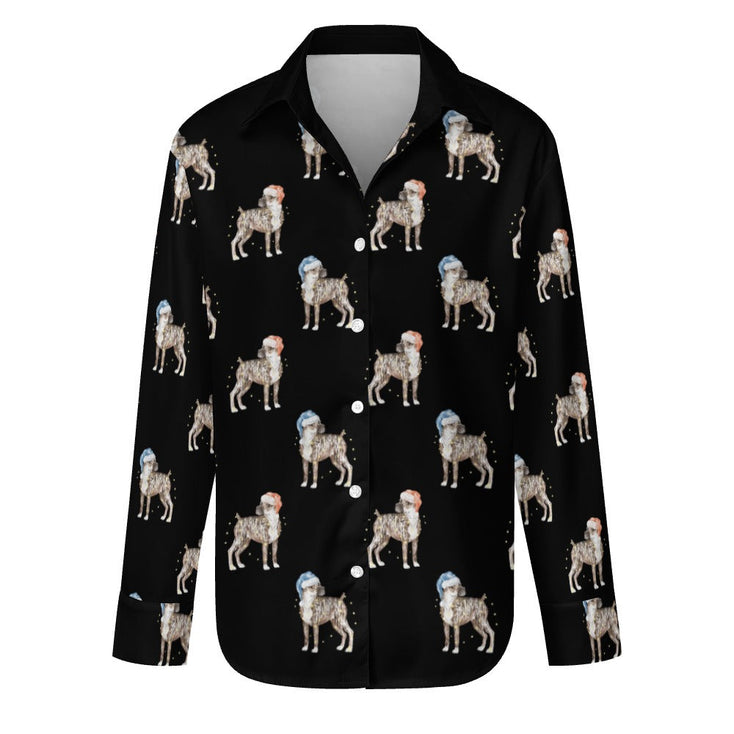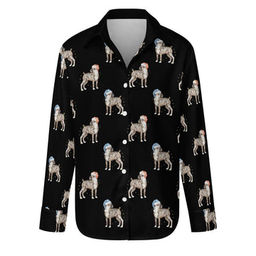 Available in five elegant colors including Ivory Cream, Dusty Pink, Cornflower Blue, Parisian Gray, and Midnight Black, there's a perfect shade for everyone. Designed with both Boxers and people in mind, this shirt complements any holiday wardrobe and is part of our Boxer Shirt collection.