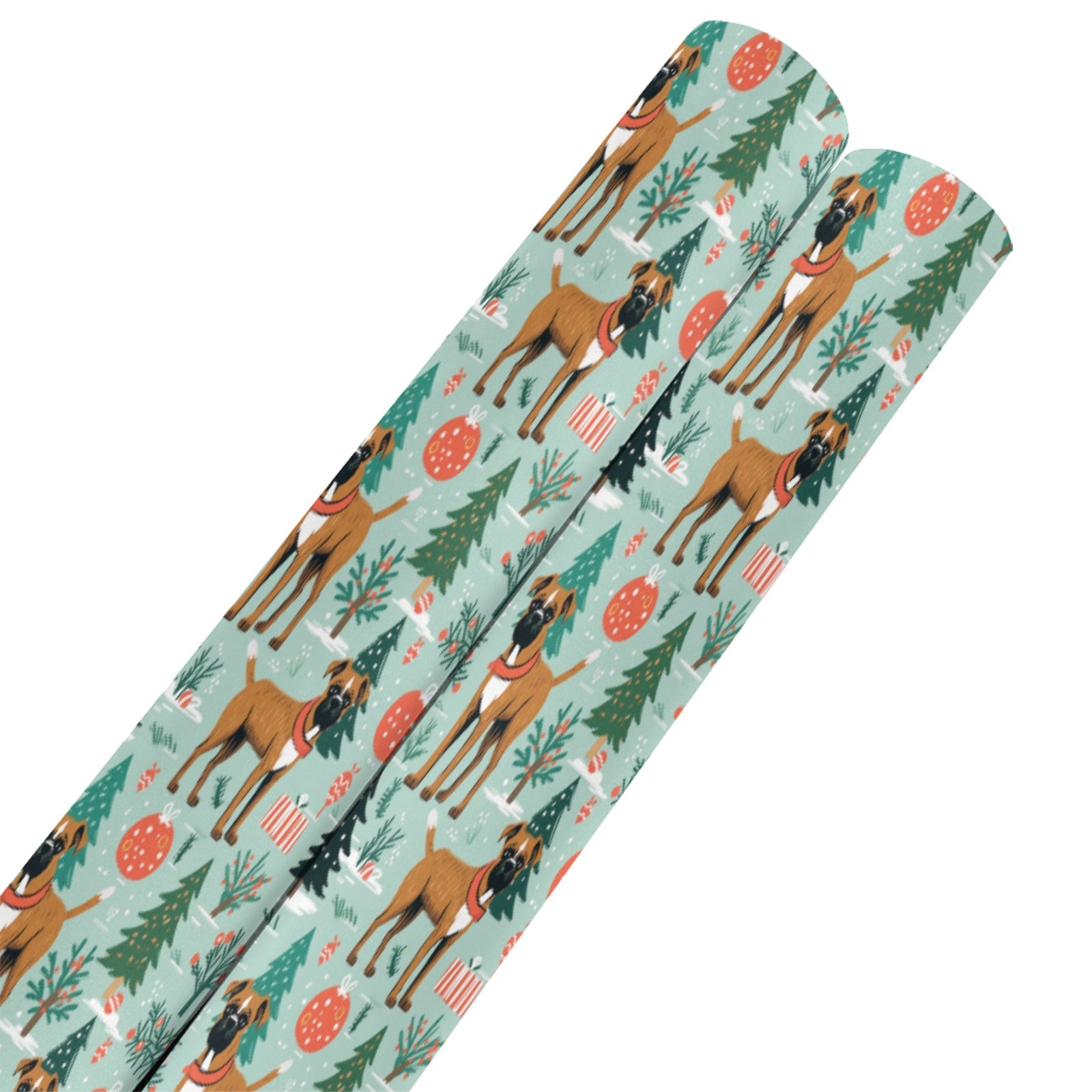 Presents and Paws Boxer Christmas Gift Wrapping Paper - 2 Rolls