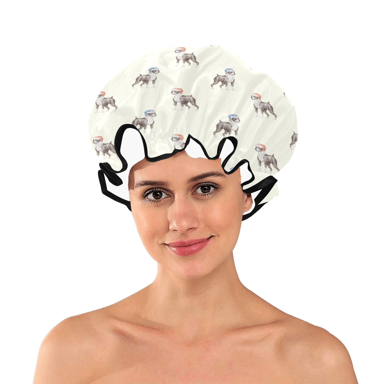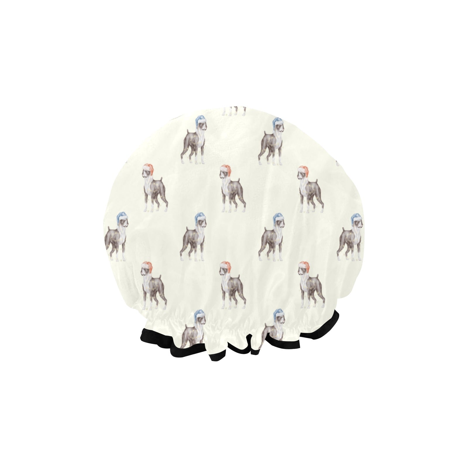 Watercolor Black White Boxer Dogs Christmas Reusable Shower Caps-Accessories-Accessories, Boxer, Christmas, Dog Mom Gifts-Ivory White-ONE SIZE-8