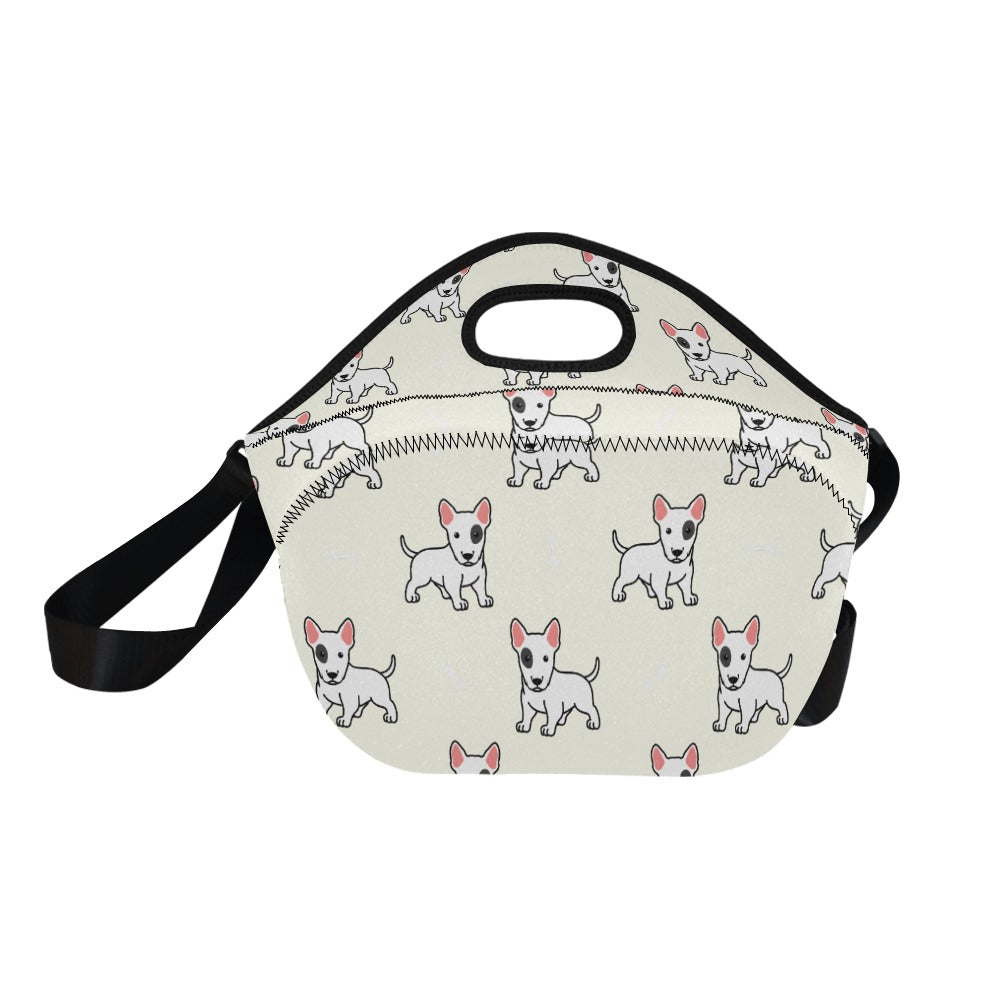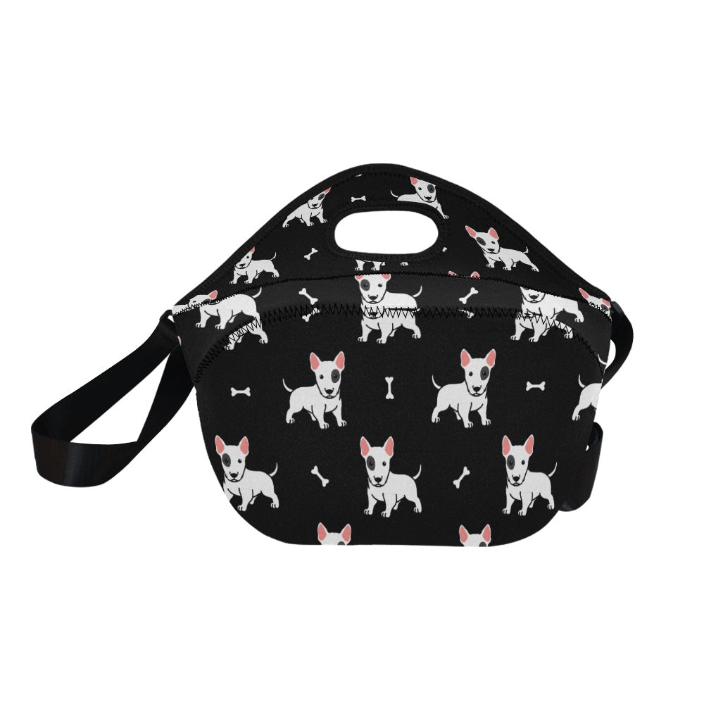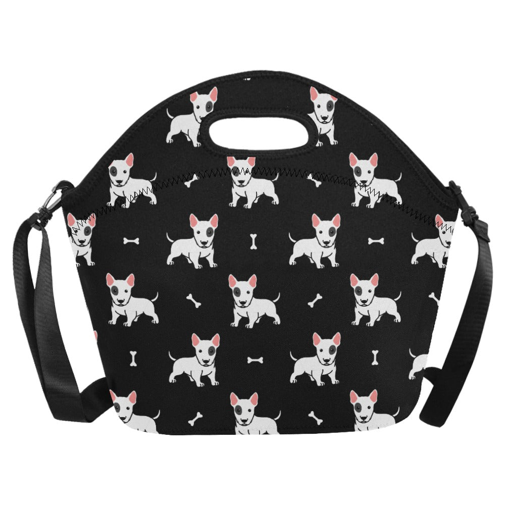 Celebrate your love for Bull Terriers with our charming Eye Patch White Bull Terrier Love Neoprene Lunch Bag! This delightful design captures the playful spirit of Bull Terrier puppies, showcasing their cheerful expressions and robust shapes.