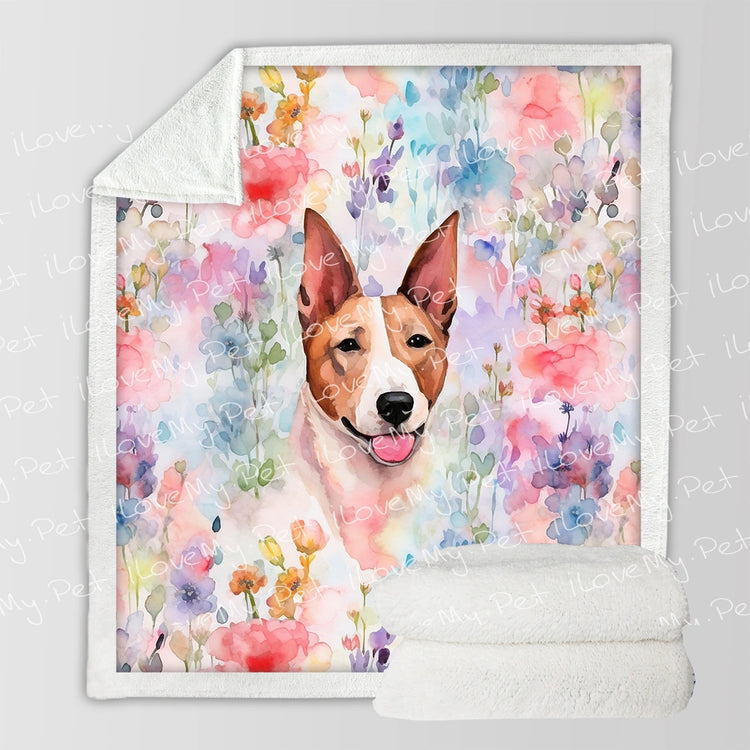 Watercolor Flower Garden Fawn and White Bull Terrier Fleece Blanket