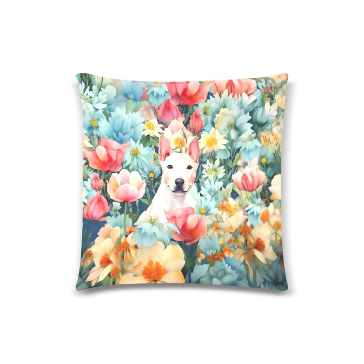 Embrace the charm of our Botanical Beauty White Bull Terrier Throw Pillow Cover, a perfect fusion of nature's serenity and the endearing spirit of the White Bull Terrier.