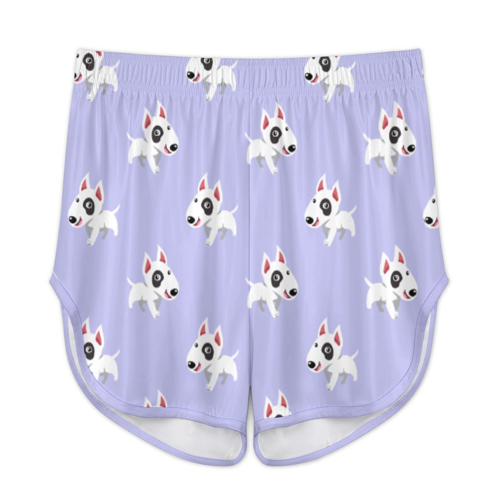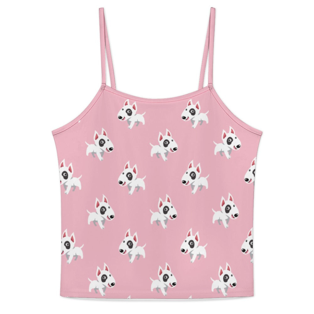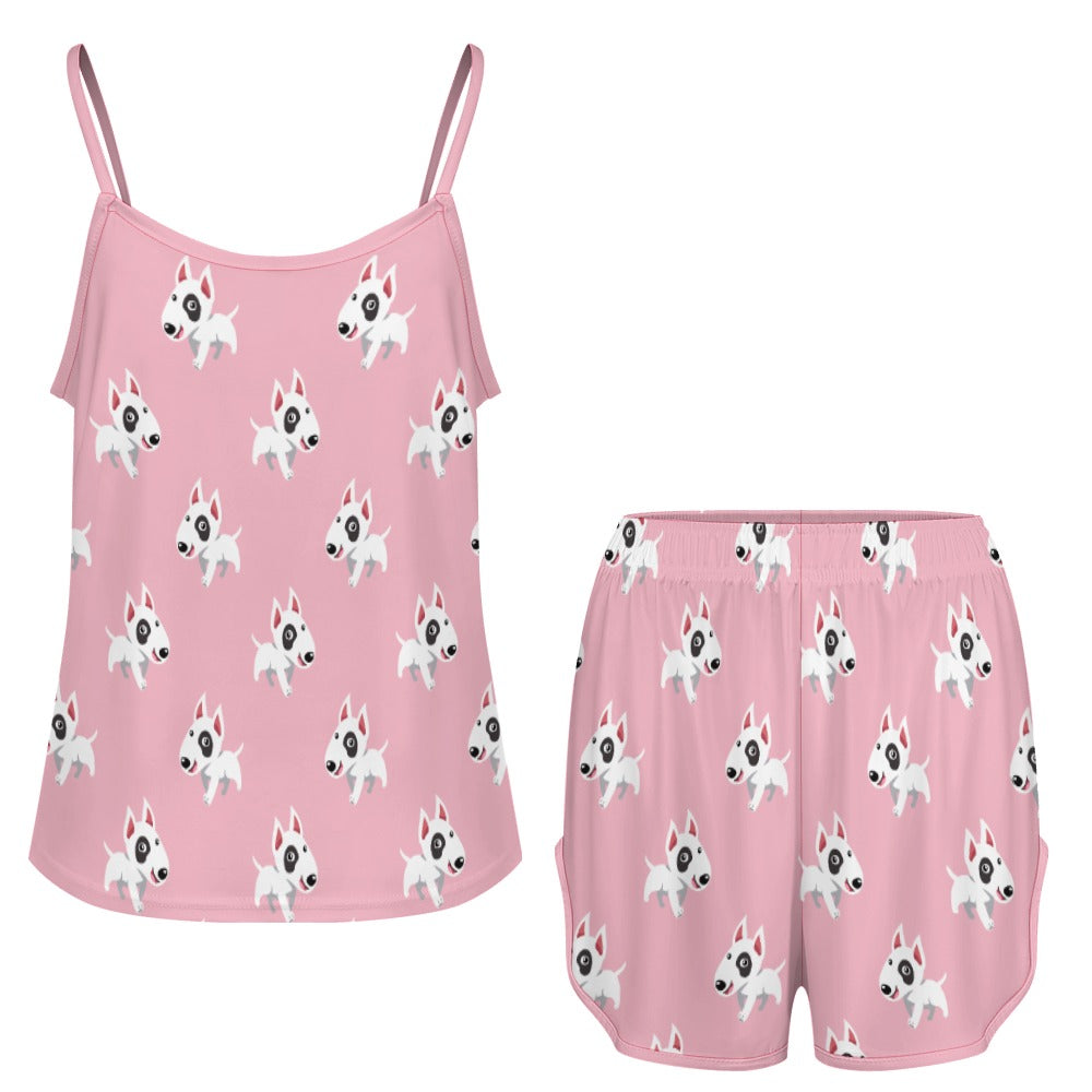 Celebrate your love for Bull Terriers with our Happy Happy Bull Terrier Women's Cami and Shorts Pajama Set! This delightful set features a playful pattern of cartoon Bull Terriers, each exuding joy and energy.