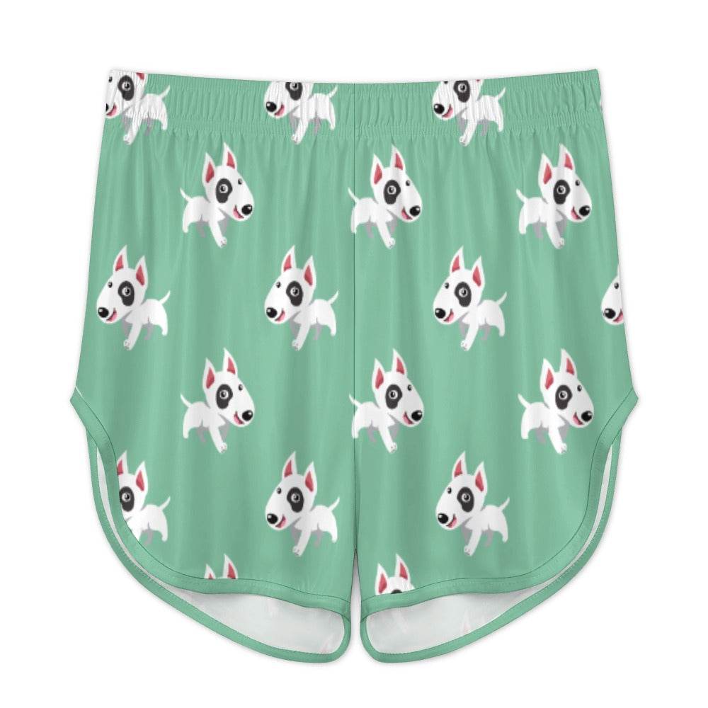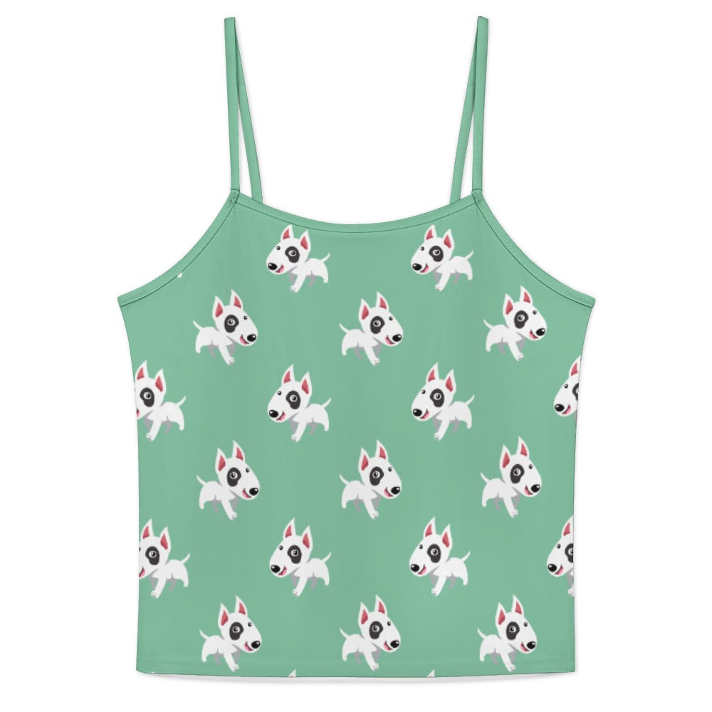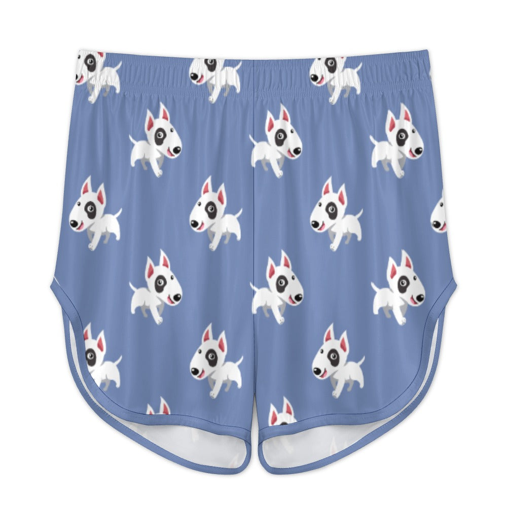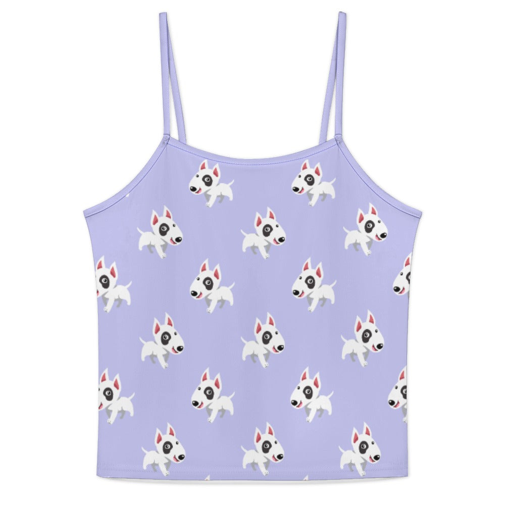 Celebrate your love for Bull Terriers with our Happy Happy Bull Terrier Women's Cami and Shorts Pajama Set! This delightful set features a playful pattern of cartoon Bull Terriers, each exuding joy and energy.