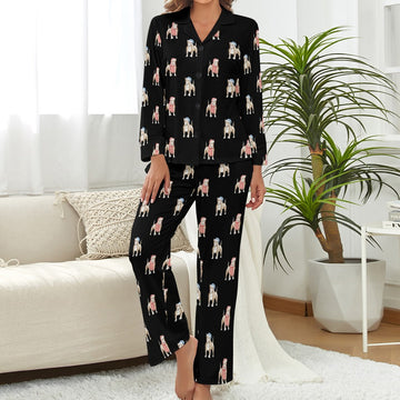 Watercolor Fawn Red White Bull Terriers Christmas Pajamas Set for Women-Pajamas-Apparel, Bull Terrier, Dog Mom Gifts, Pajamas-Midnight Black-S-9