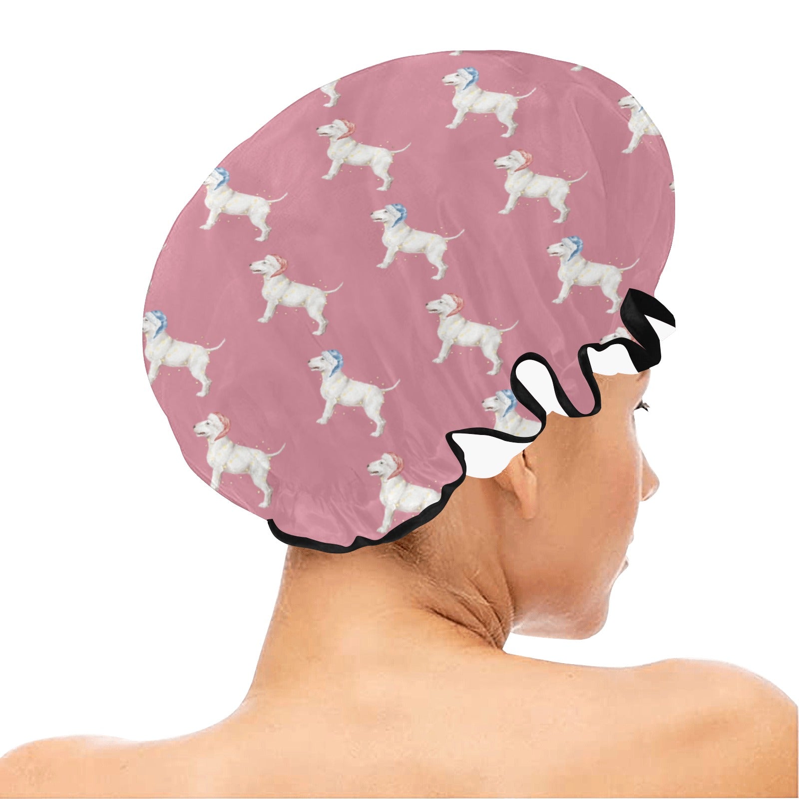 Watercolor White Bull Terriers Christmas Reusable Shower Caps