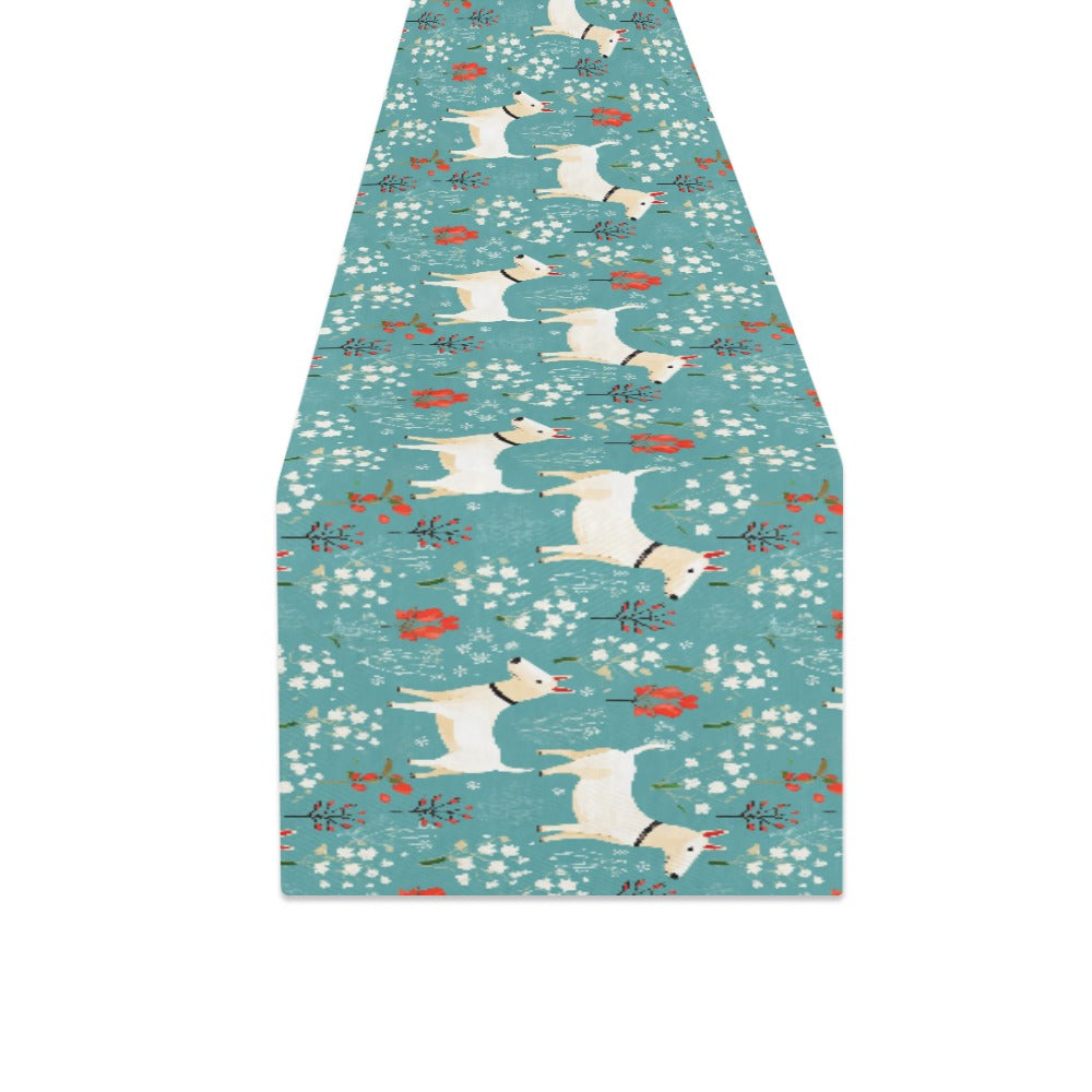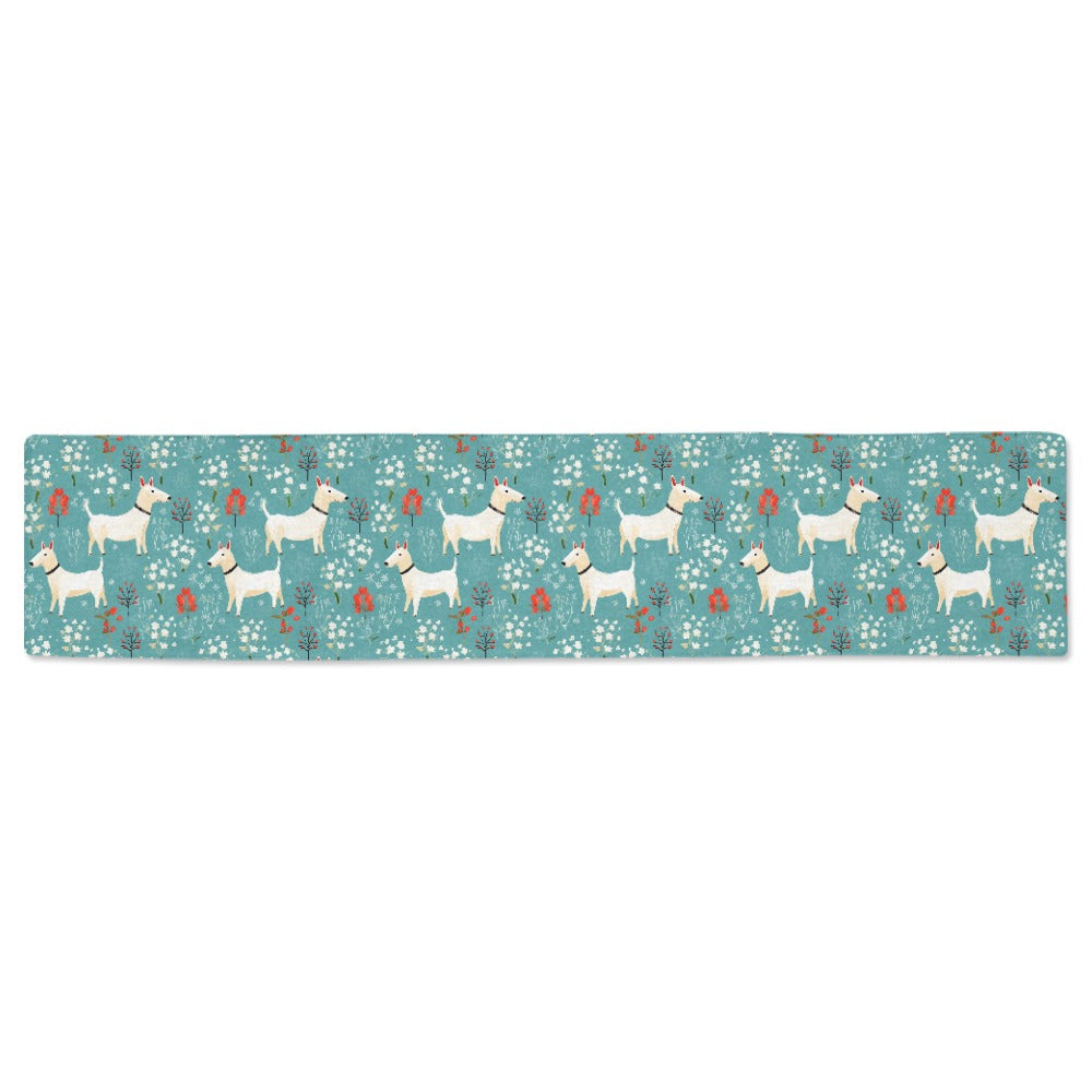 Designed with both the Bull Terrier and people in mind, this table runner is the perfect way to flaunt your Bull Terrier loving personality. It's ideal for dressing up your dining table, sprucing up buffets, or as a chic accent on a console table, making it a versatile addition to your home. The dynamic floral and terrier pattern infuses life and movement into any space, embodying the essence of spring and the joyful energy of the Bull Terrier breed.