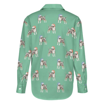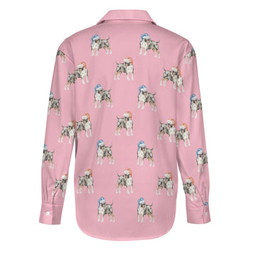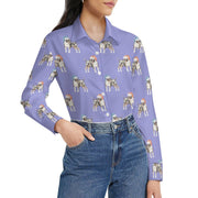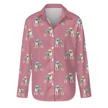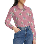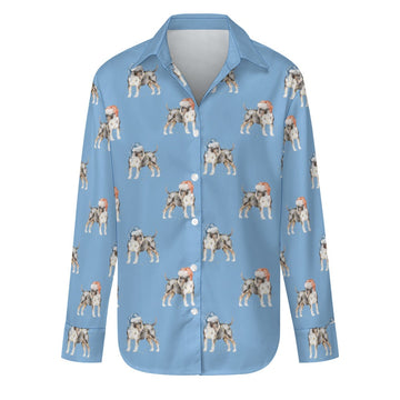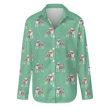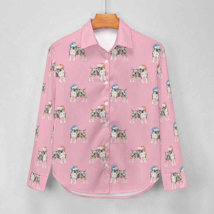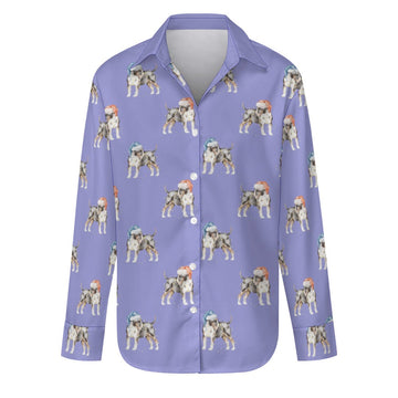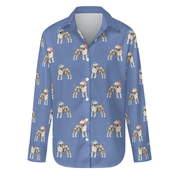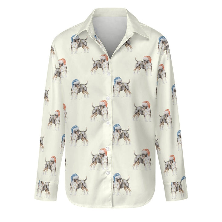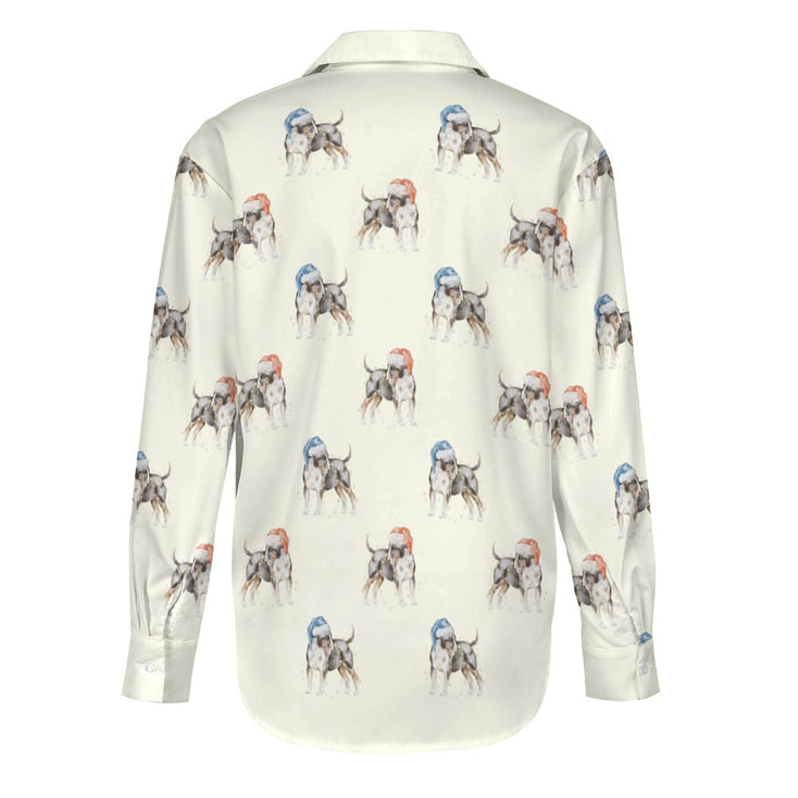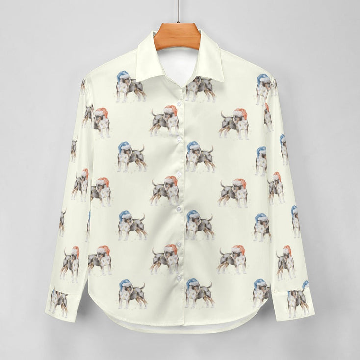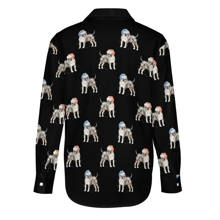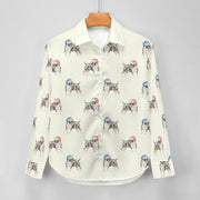 Available in five stylish colors including Ivory Cream and Parisian Gray, this shirt complements any festive outfit. Wear it to holiday parties or gift it to a special Bull Terrier owner. Explore our Bull Terrier Shirts collection.