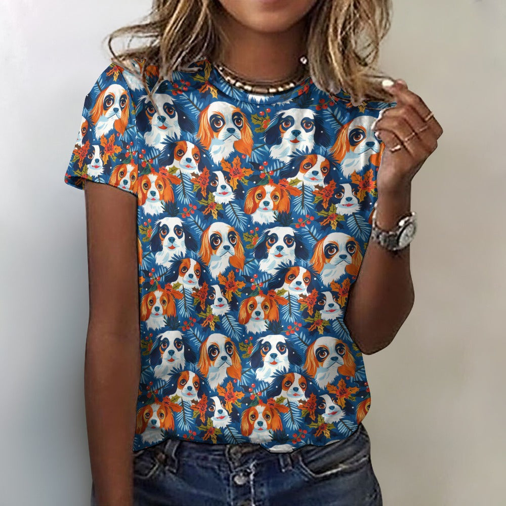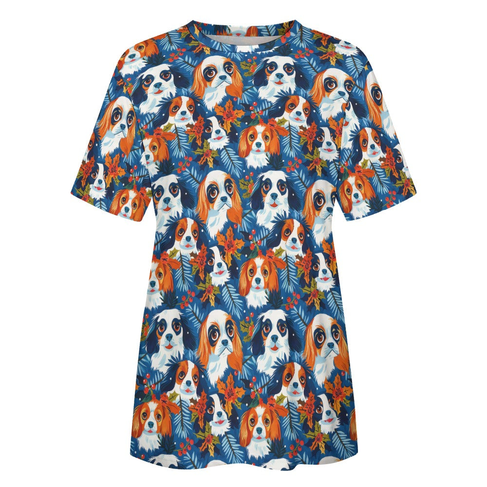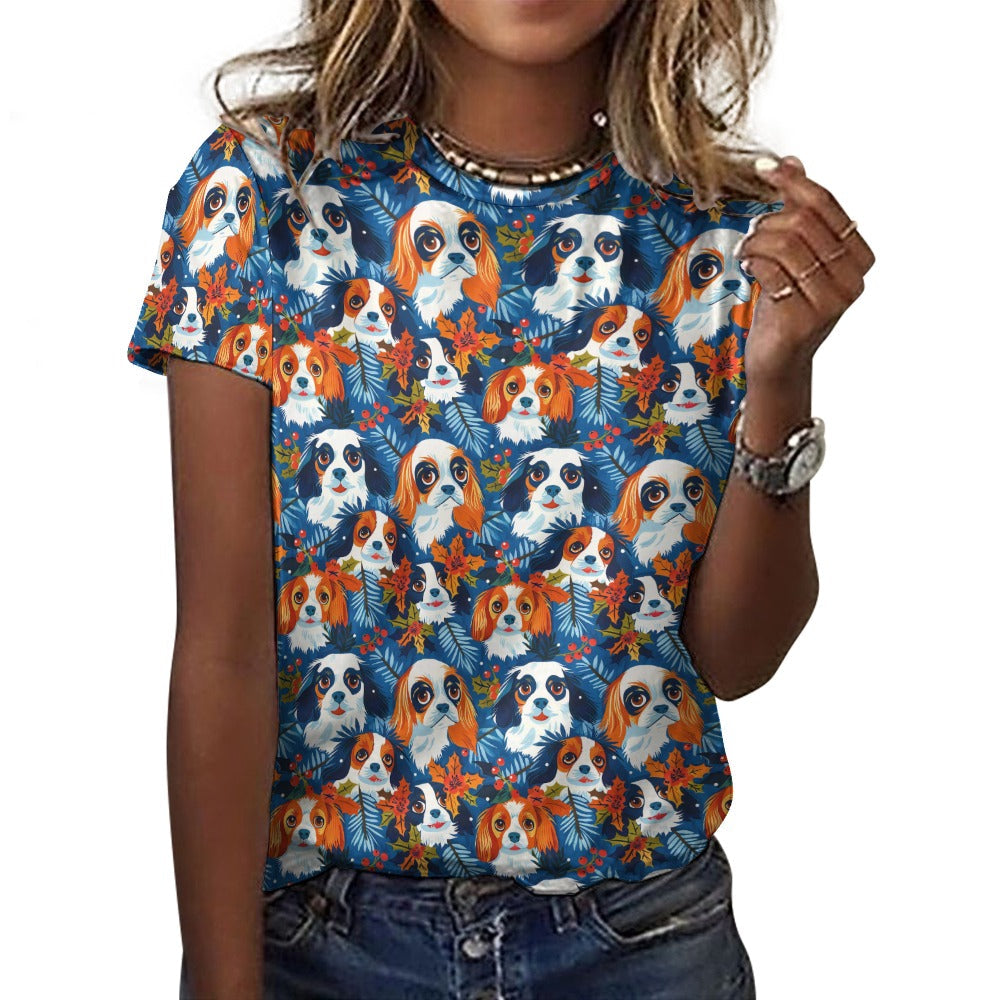 Autumn’s Adornment King Charles Spaniels Christmas Women's Cotton T-Shirt