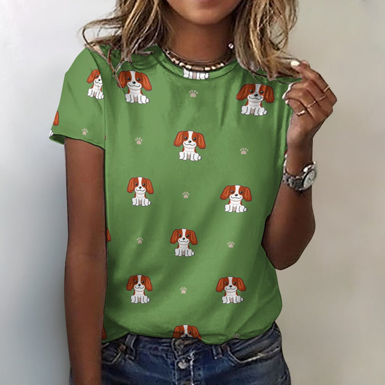 Happy Cavalier King Charles Spaniels All Over Print Women's Cotton T-Shirt - 4 Colors