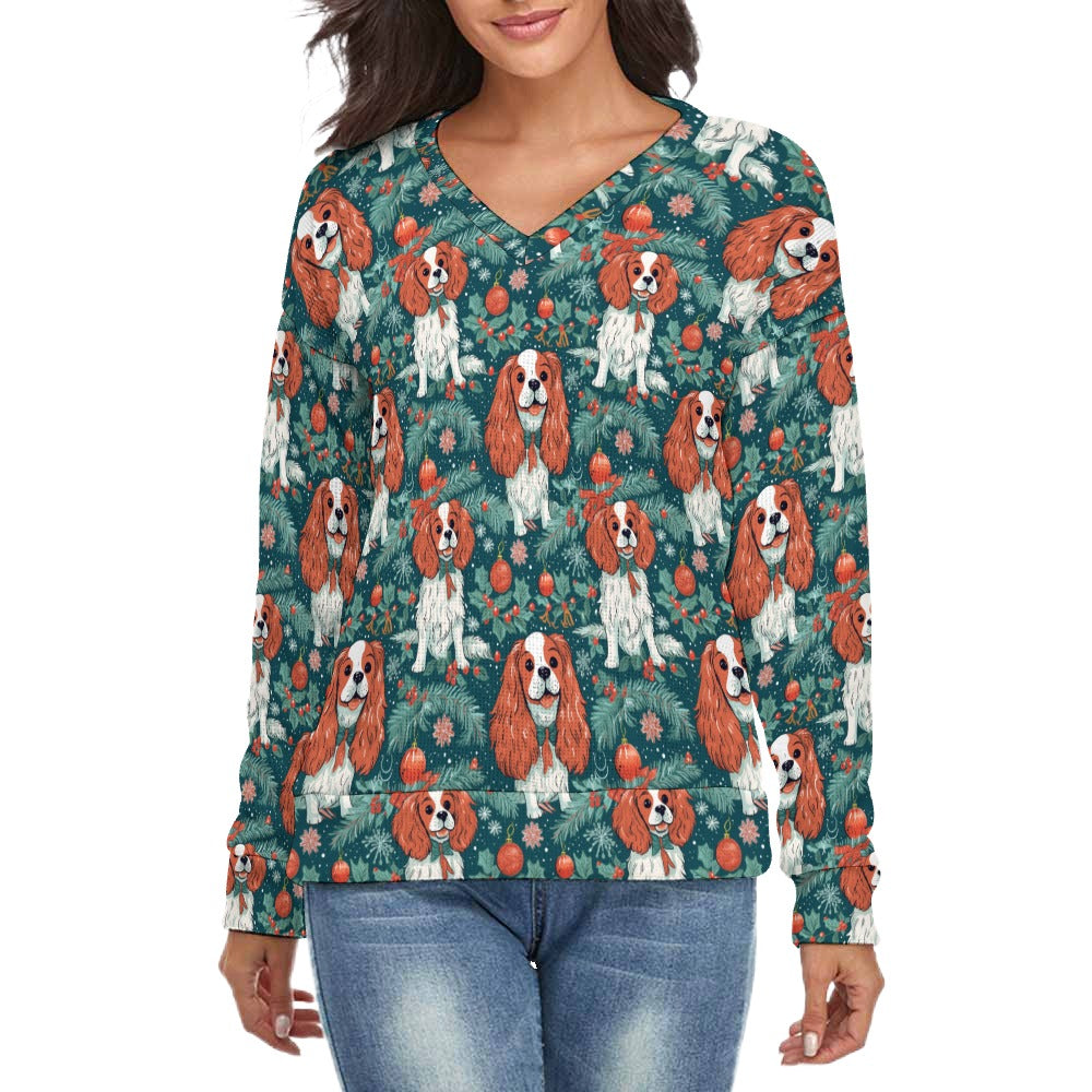 Holly Jolly Blenheim Cavaliers Women's V-Neck Christmas Sweater