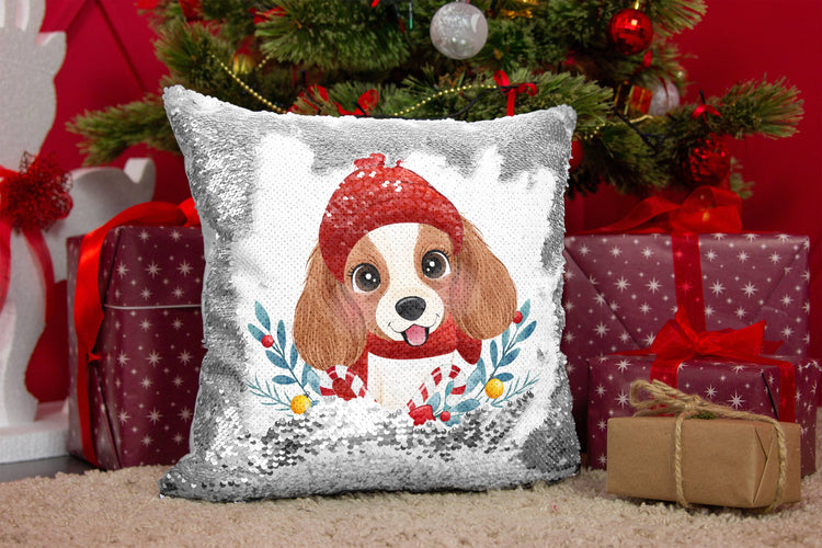 Embrace the festive spirit in a unique and endearing way with our Merry Cavalier King Charles Spaniel Christmas Sequinned Pillowcases.