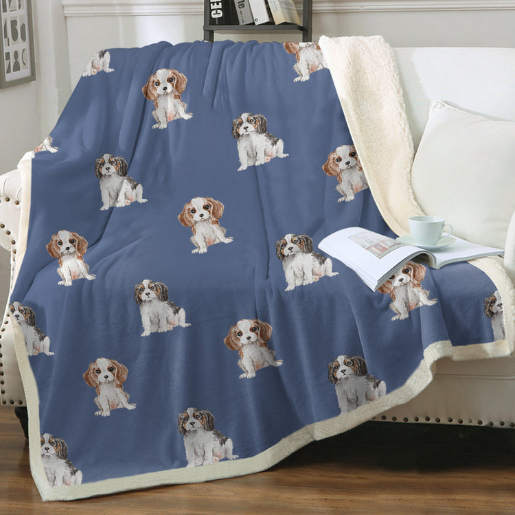 Watercolor King Charles Spaniel Puppies Fleece Blanket - 8 Colors-Blanket-Bedding, Blankets, Cavalier King Charles Spaniel, Home Decor-19