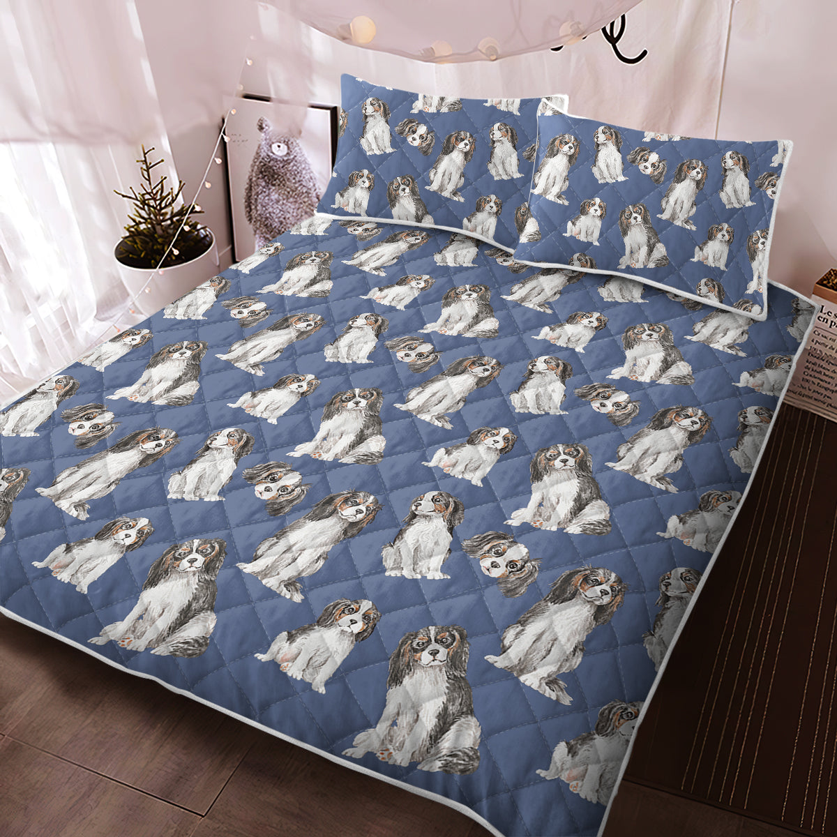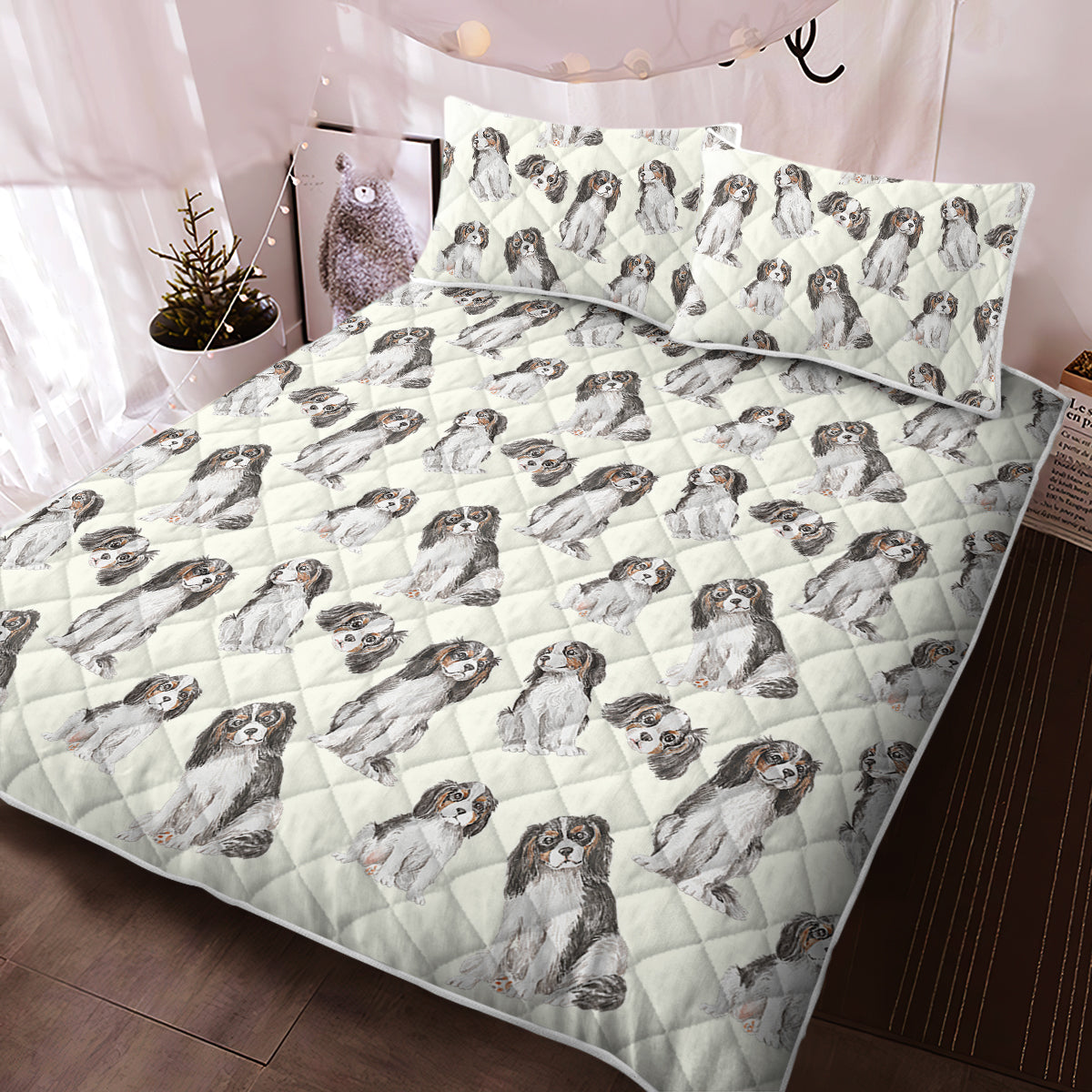 Watercolor Symphony Tricolor King Charles Spaniels Quilted Bedding Set
