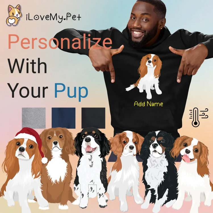 Unleash your furry love with our unique gifts for Cavalier King Charles Spaniel lovers. This hoodie is a heartfelt tribute to your beloved pet, featuring a detailed, true-to-breed image and customizable with your pup's likeness and name.