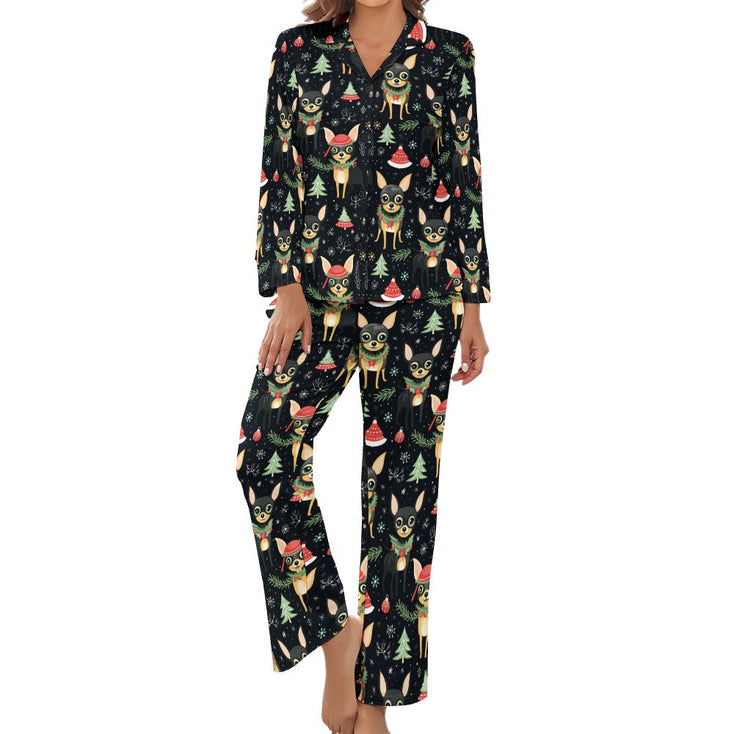 Black Tan Chihuahuas Christmas Cheer Pajamas Set for Women