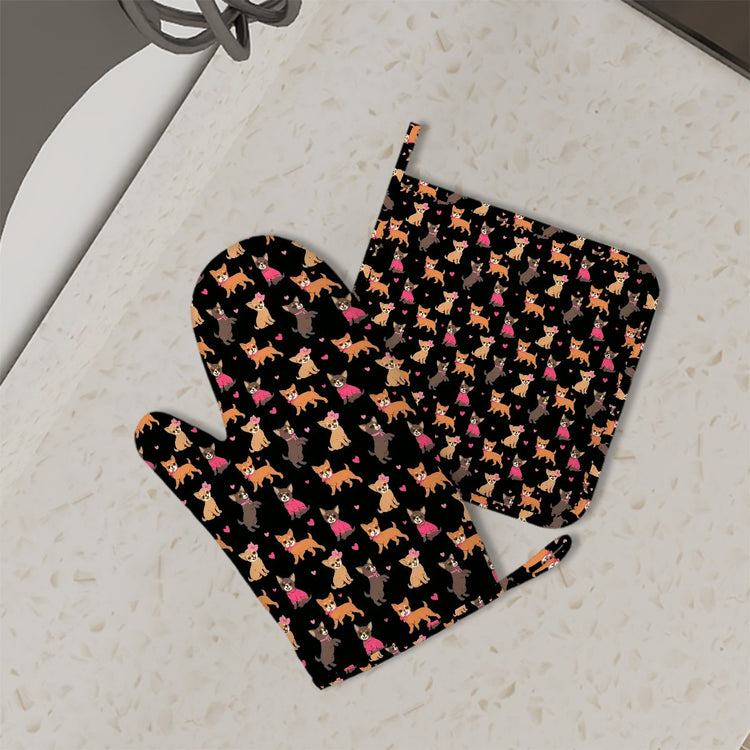 Charming Chihuahuas in Sweet Style Oven Gloves