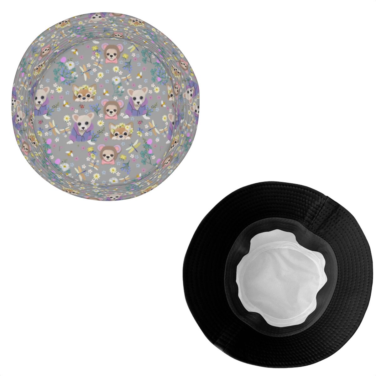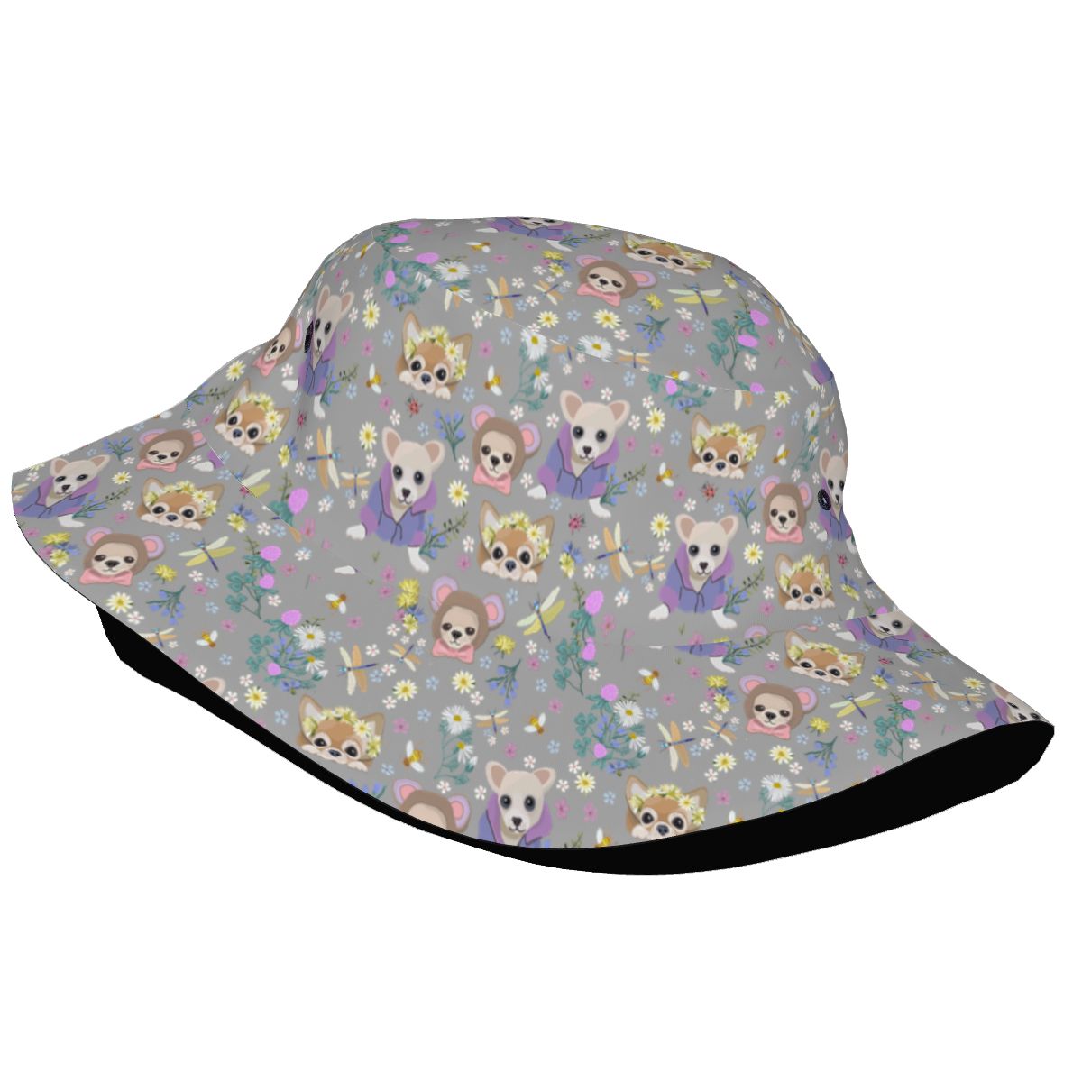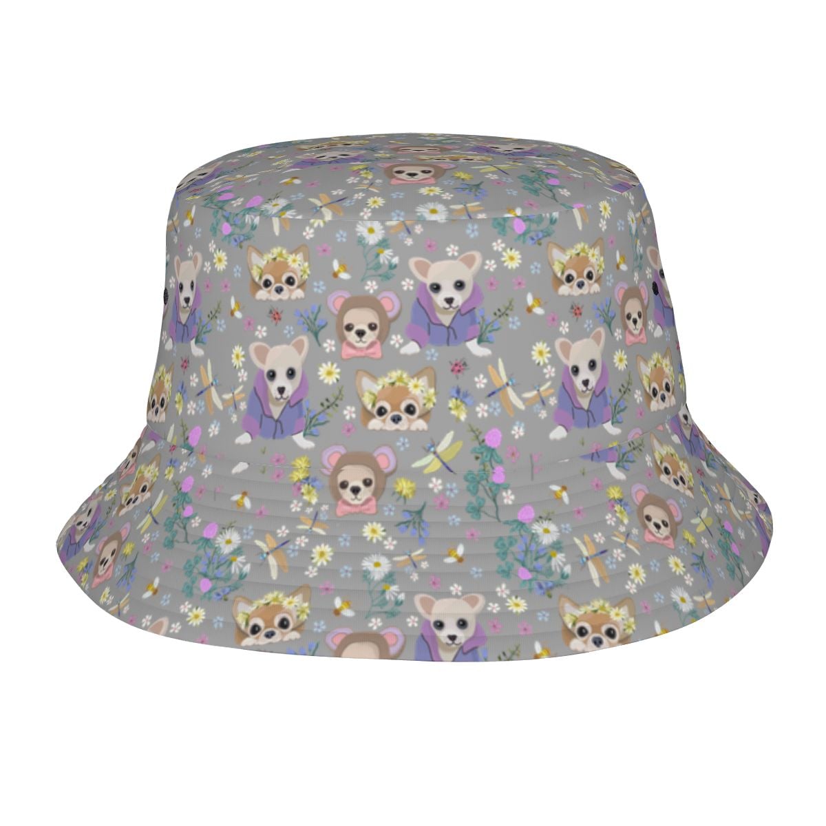Magic Flower Garden Chihuahuas Bucket Hat-Hats & Caps-Parisian Gray-One Size-5
