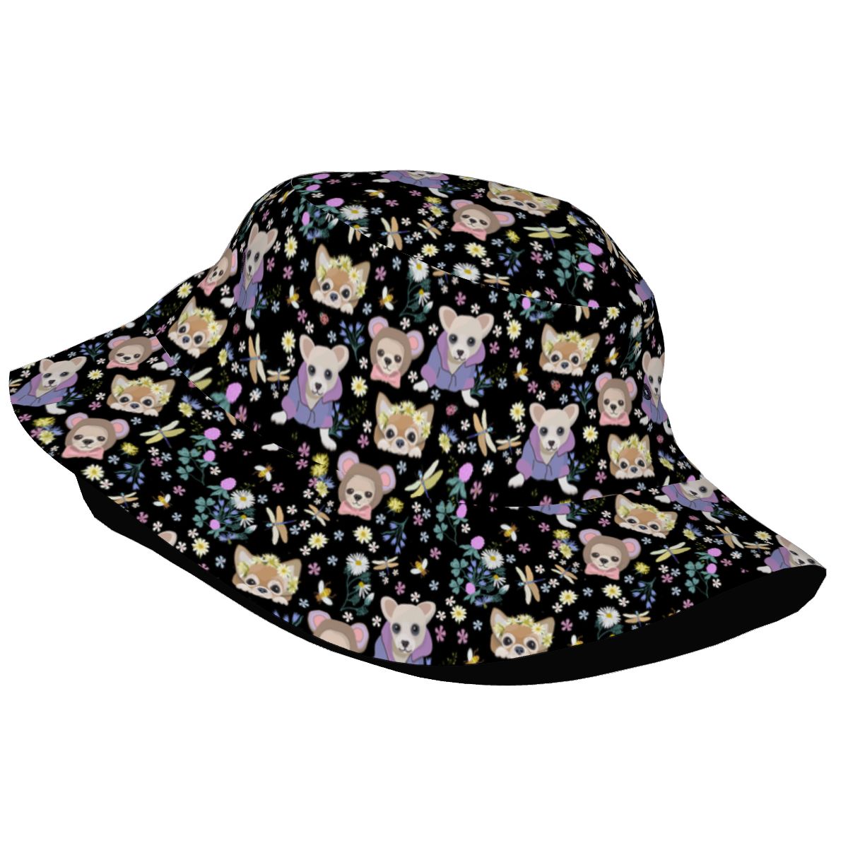 Magic Flower Garden Chihuahuas Bucket Hat-Hats & Caps-Midnight Black-One Size-6