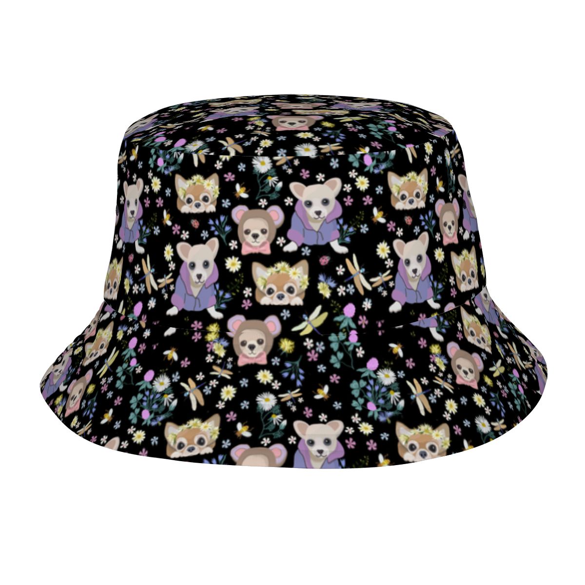 Bring sunny-day charm wherever you go with the Magic Flower Garden Chihuahuas Bucket Hat.