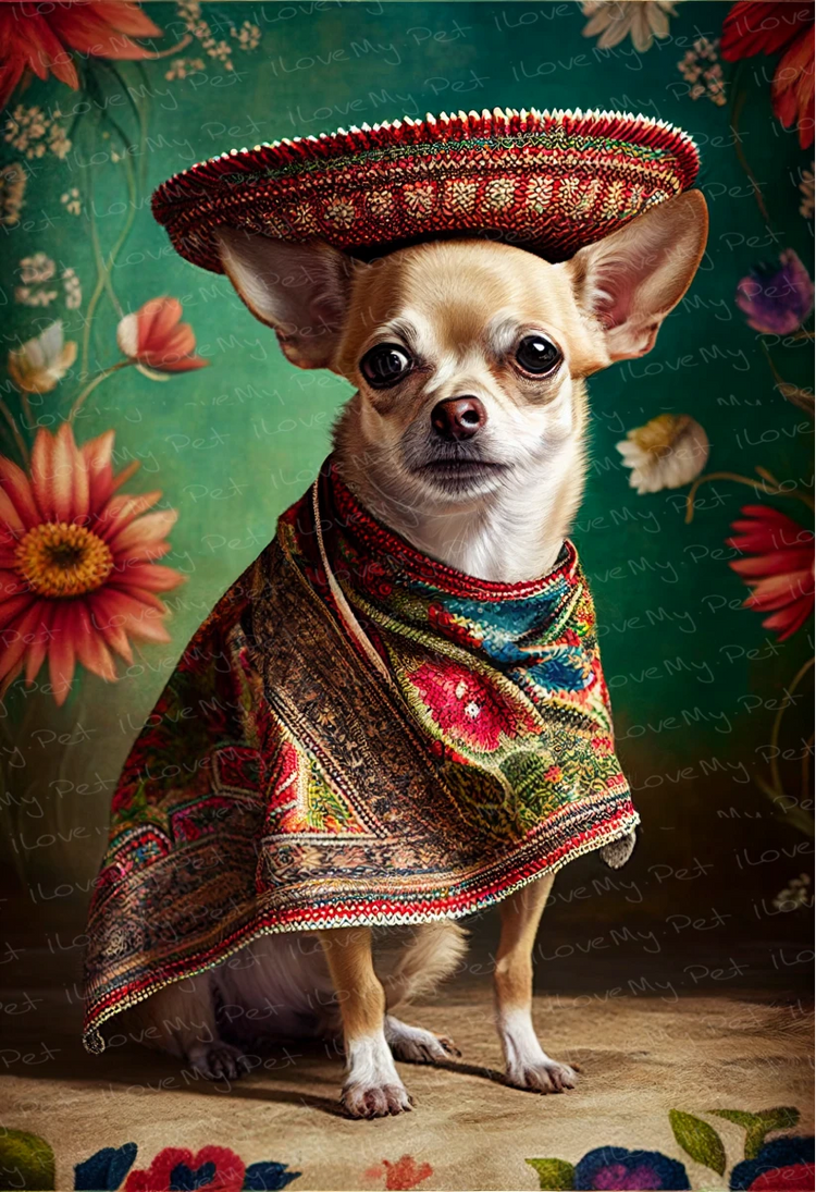 Chihuahua Art piece is not just a depiction of a dog in costume, but a celebration of the rich tapestry of Mexican culture.