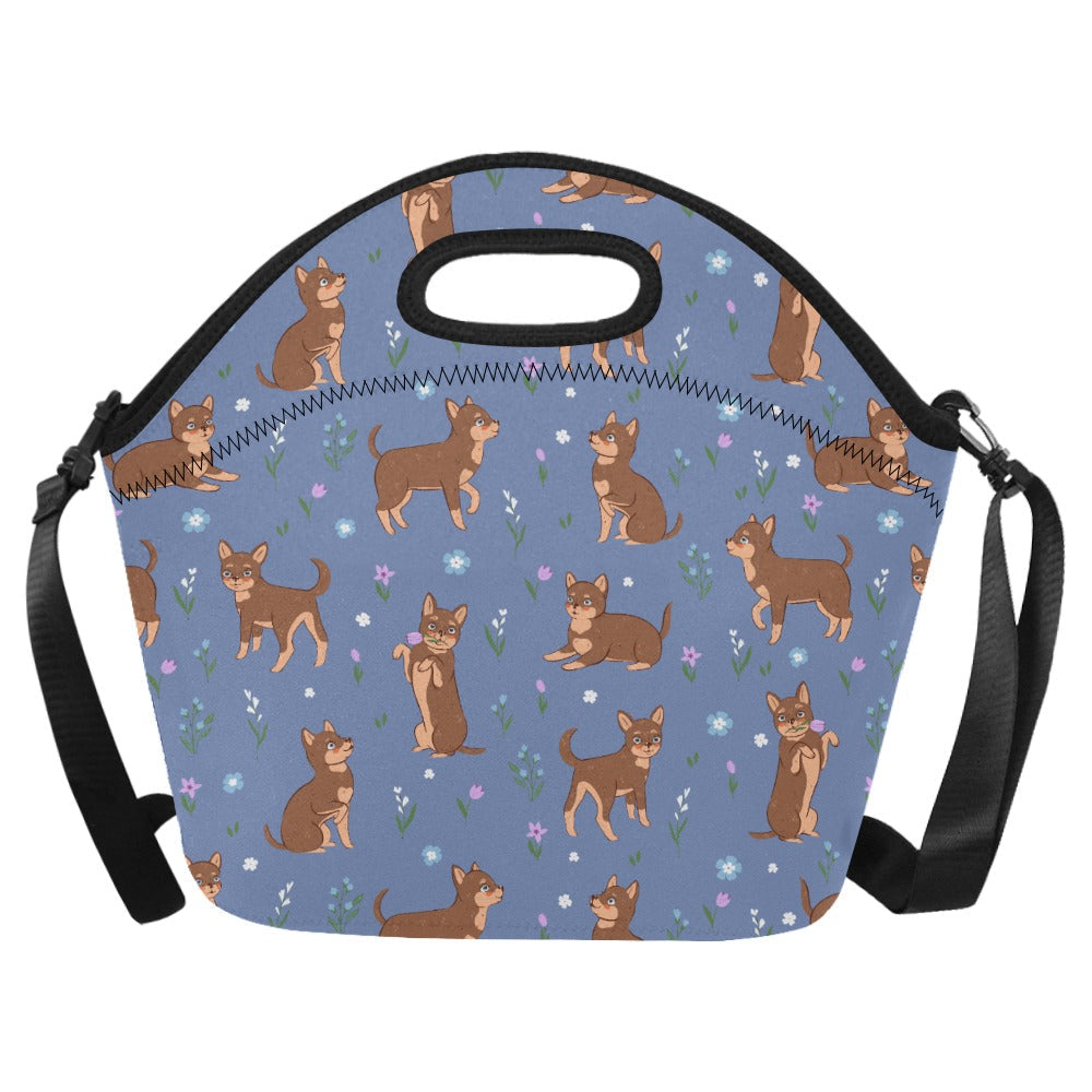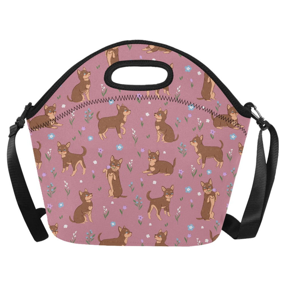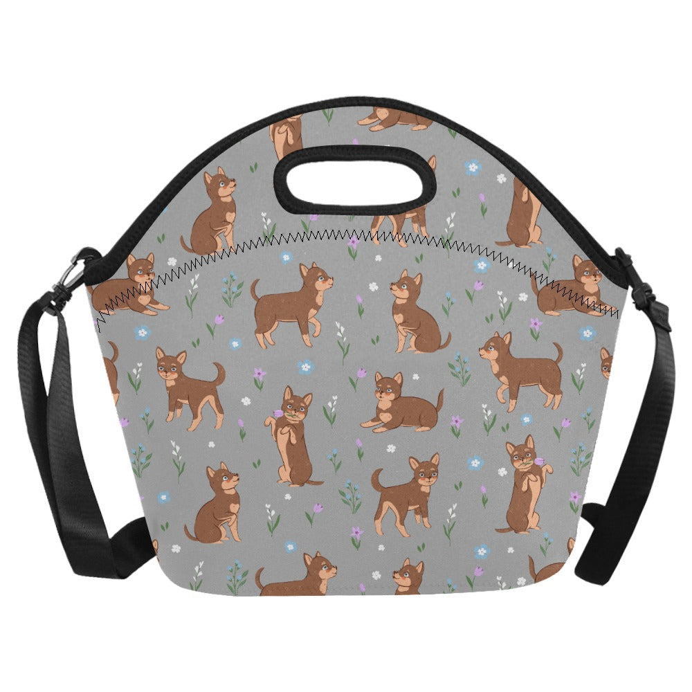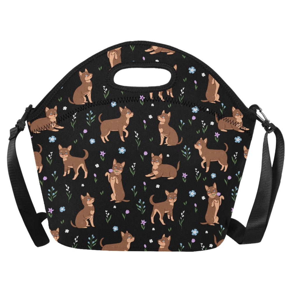 Flower Garden Chocolate Chihuahuas Neoprene Lunch Bag