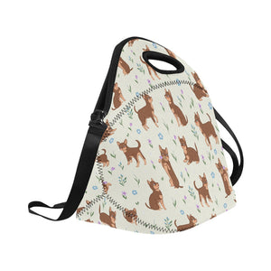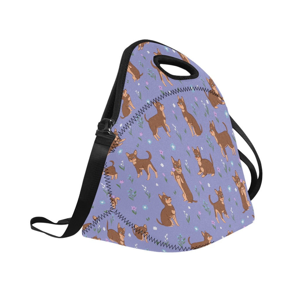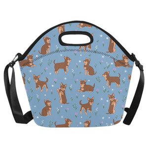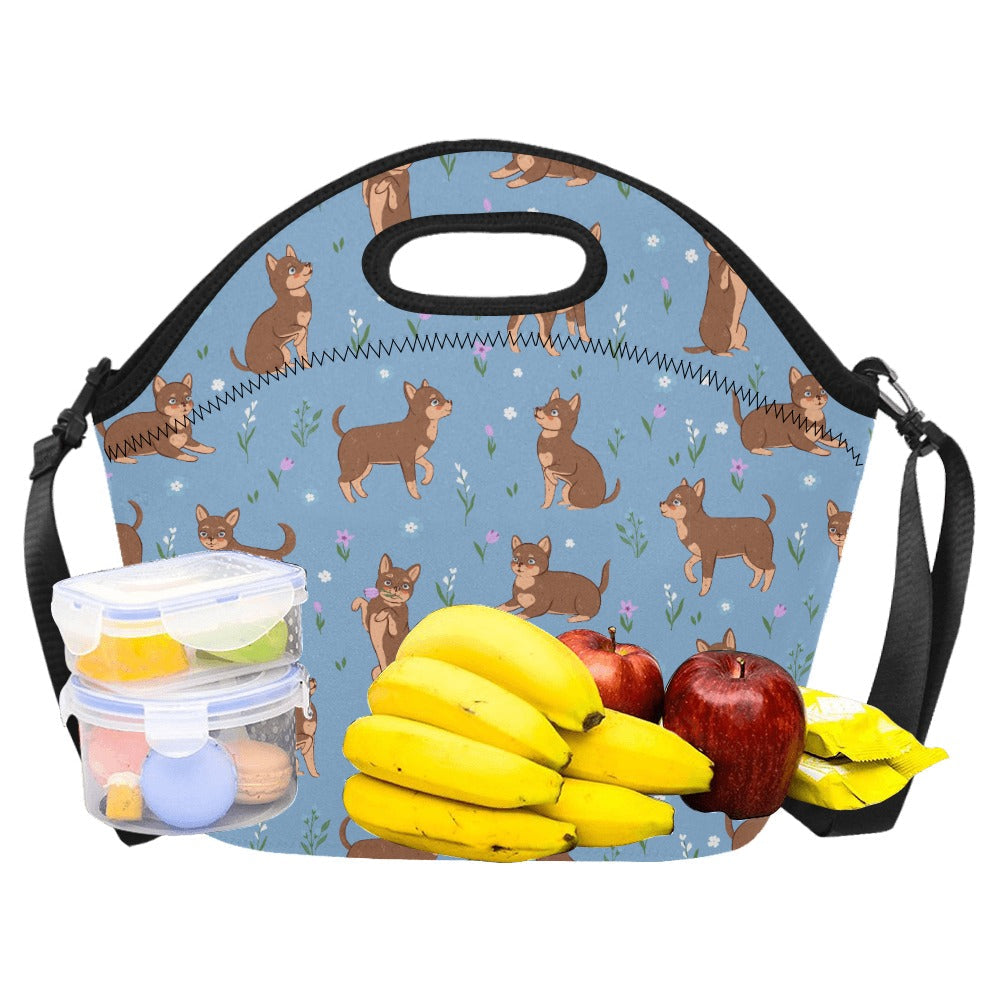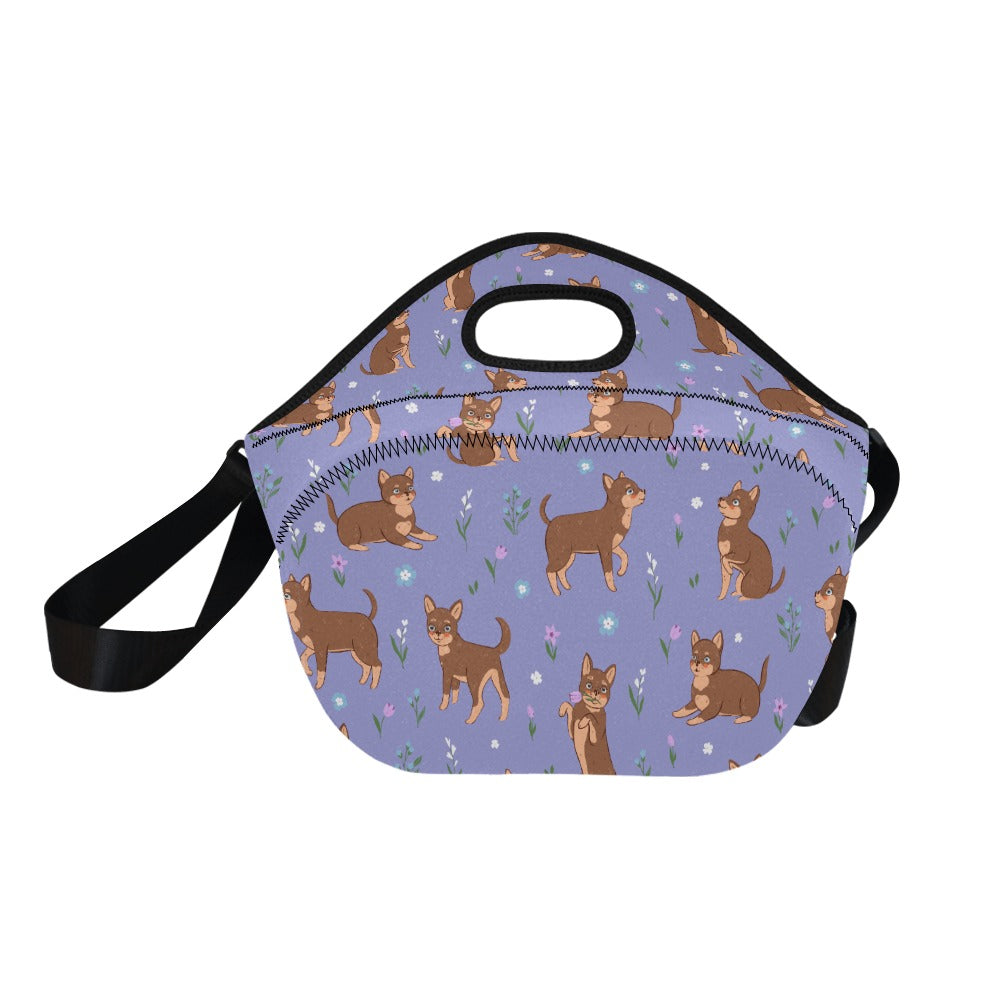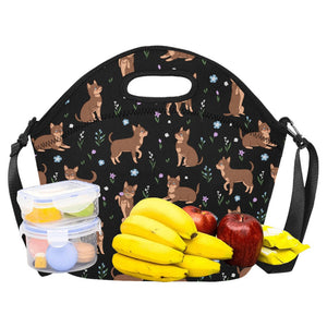 Flower Garden Chocolate Chihuahuas Neoprene Lunch Bag