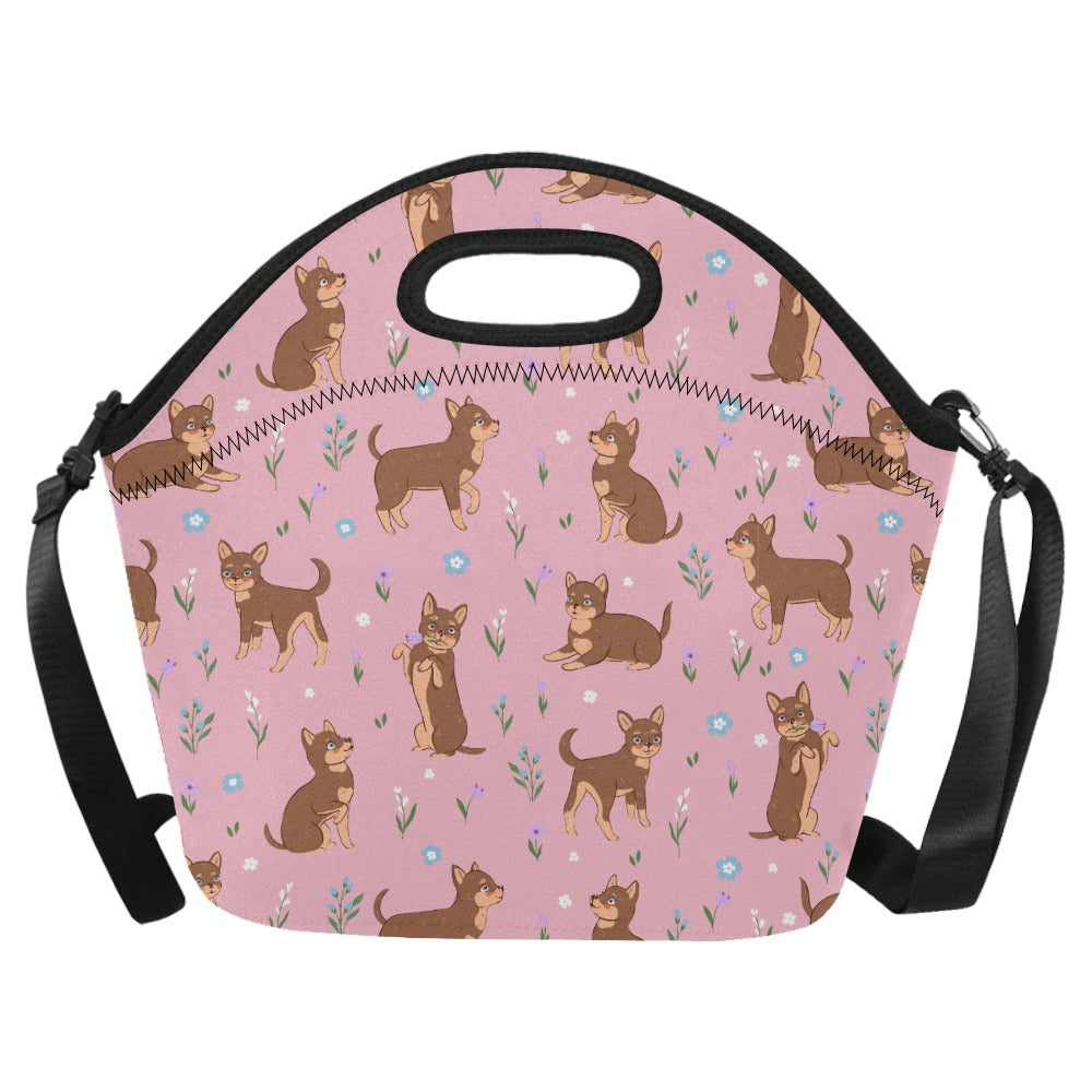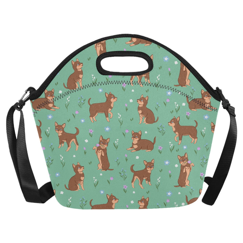 Flower Garden Chocolate Chihuahuas Neoprene Lunch Bag-43