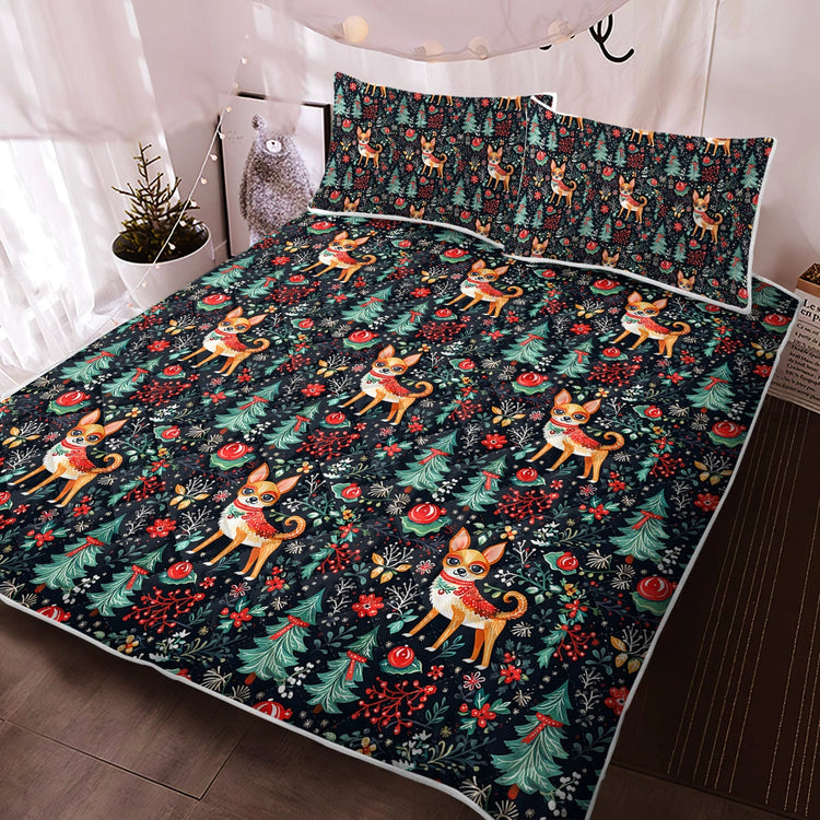 Celebrate the holidays with the Chihuahua Christmas Elegance Quilt Blanket Bedding Set!