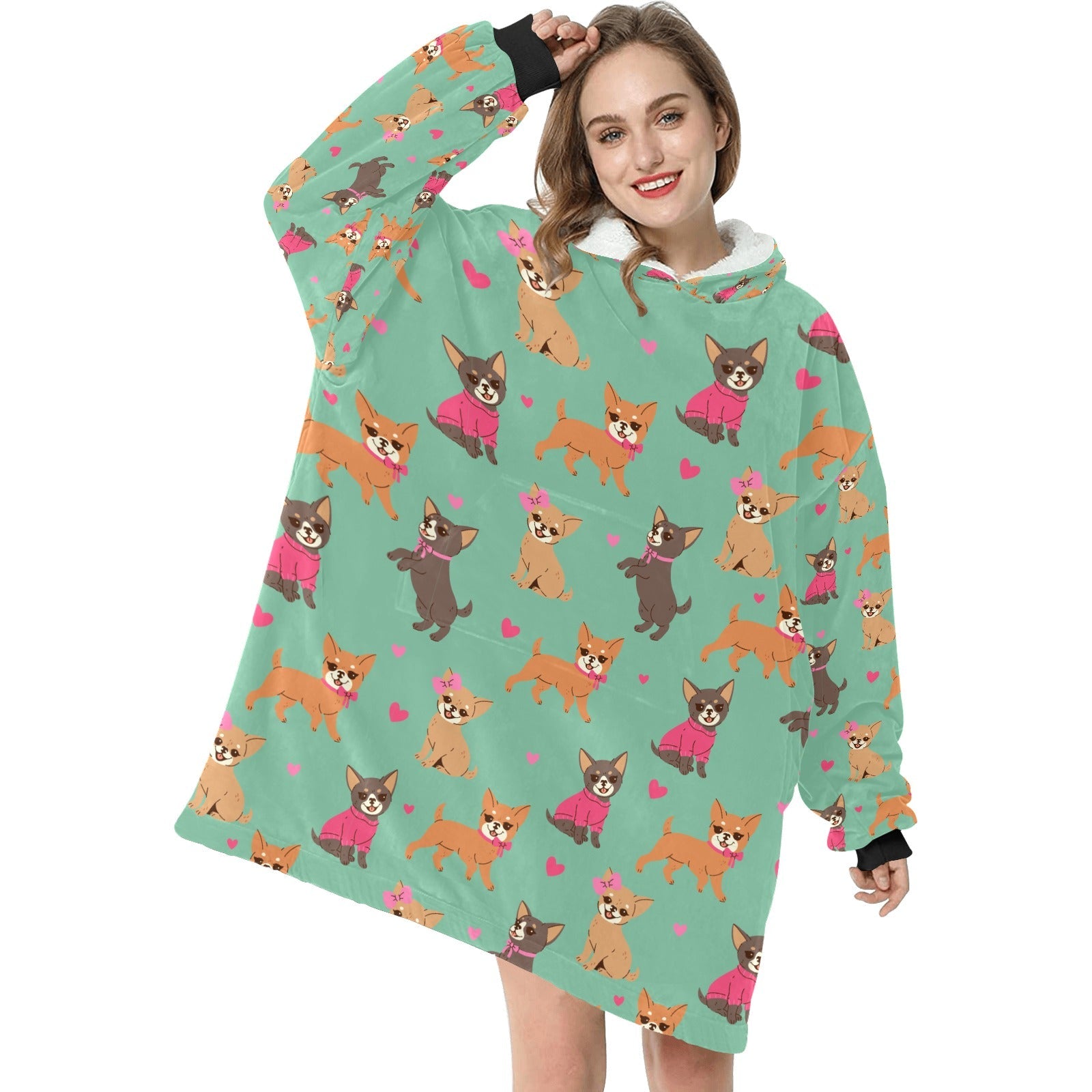 Charming Chihuahuas in Sweet Style Blanket Hoodie-Blanket-Apparel, Blanket Hoodie, Blankets, Chihuahua, Dog Mom Gifts-7
