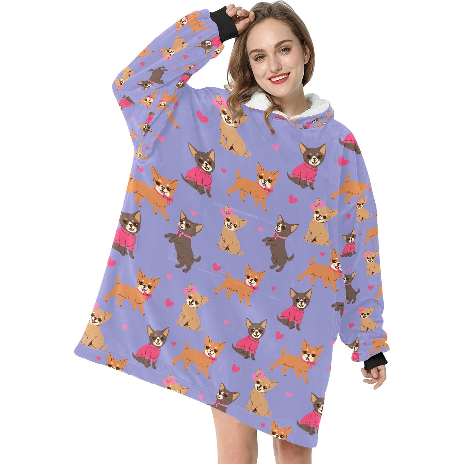 Charming Chihuahuas in Sweet Style Blanket Hoodie-Blanket-Apparel, Blanket Hoodie, Blankets, Chihuahua, Dog Mom Gifts-Lavender Purple-ONE SIZE-31