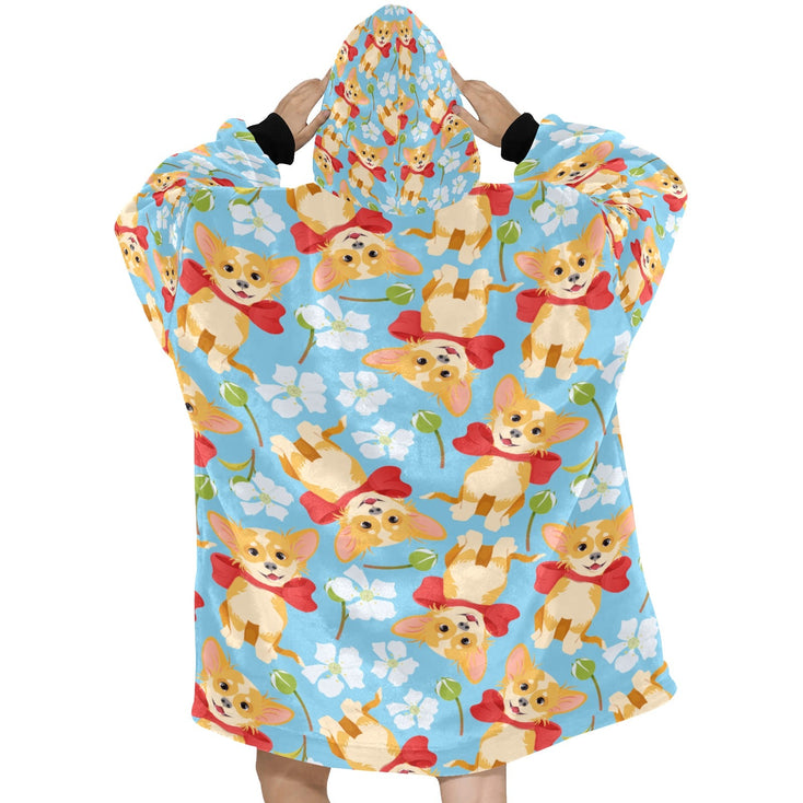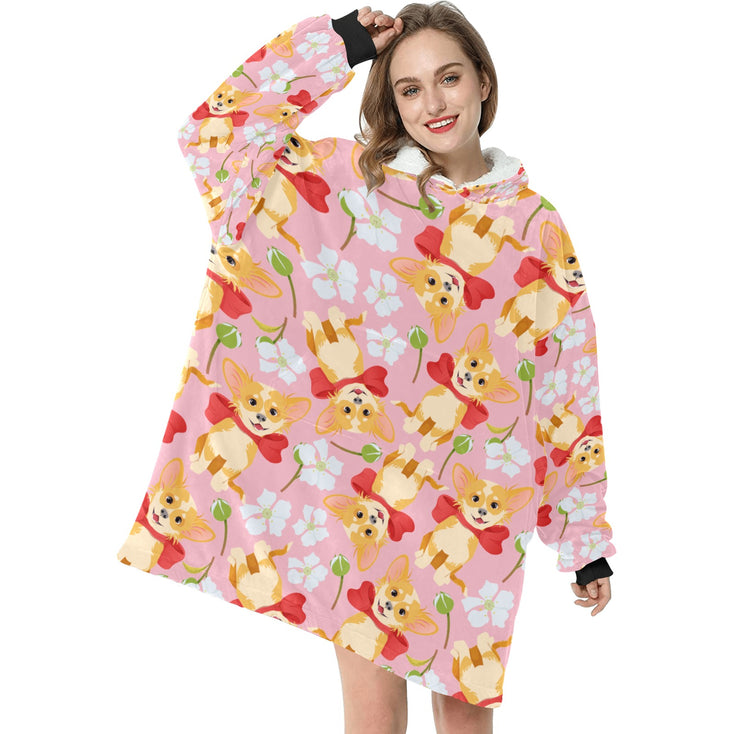 Flower Garden Long Hair Chihuahua Blanket Hoodie for Women - 4 Colors
