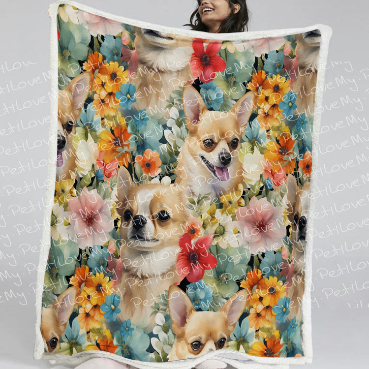 Experience the joy and vibrancy of our Fawn Chihuahuas in Bloom Soft Warm Fleece Blanket.